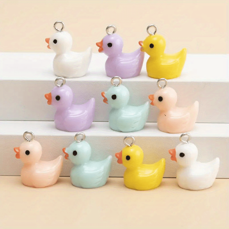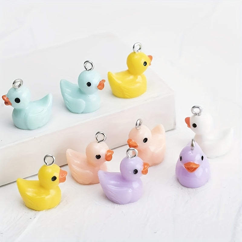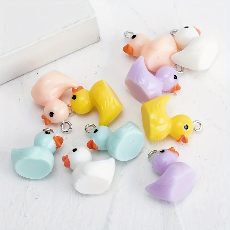 Create unique jewelry pieces with these 10pcs duck resin earrings charms. Perfect for DIY keychains, bangles, and pendants.
