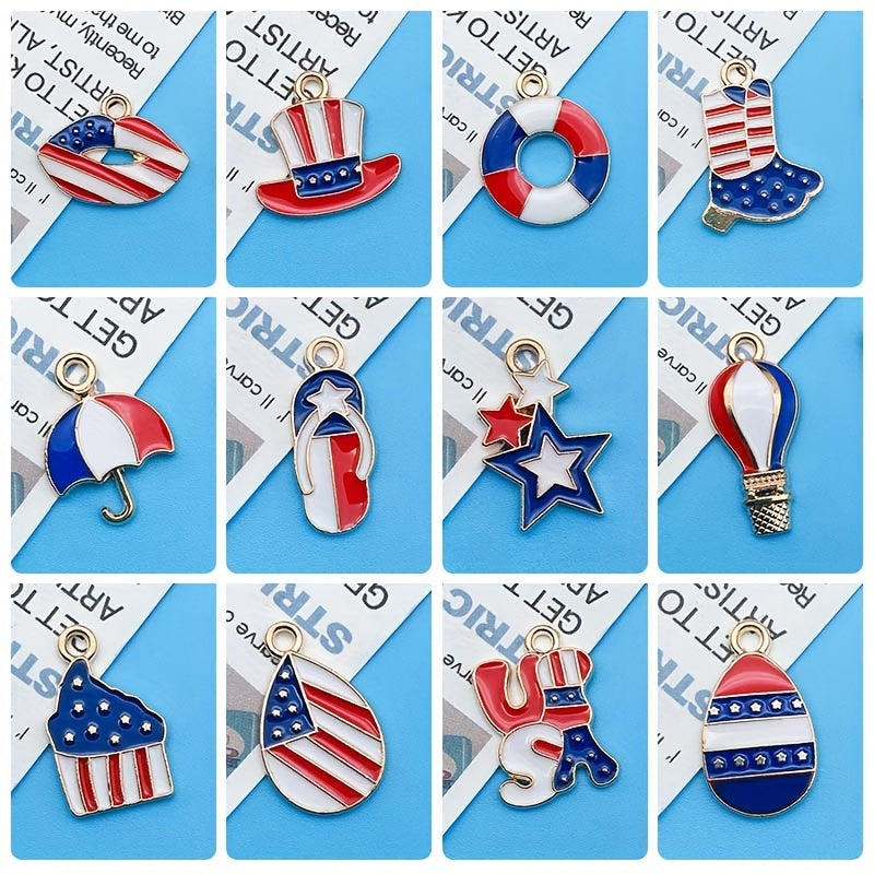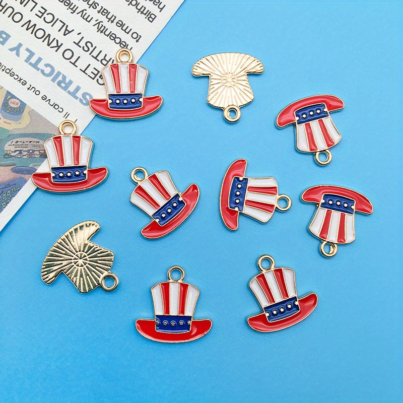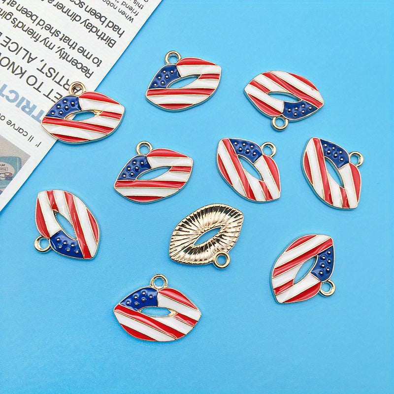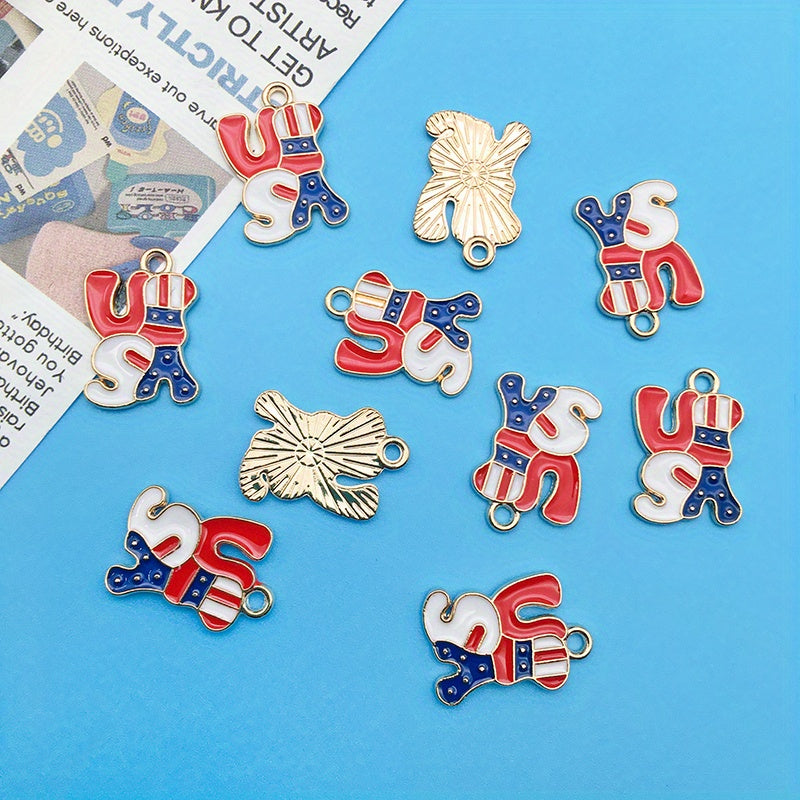 10pcs American Flag Enamel Alloy Pendant Set for DIY Jewelry Making