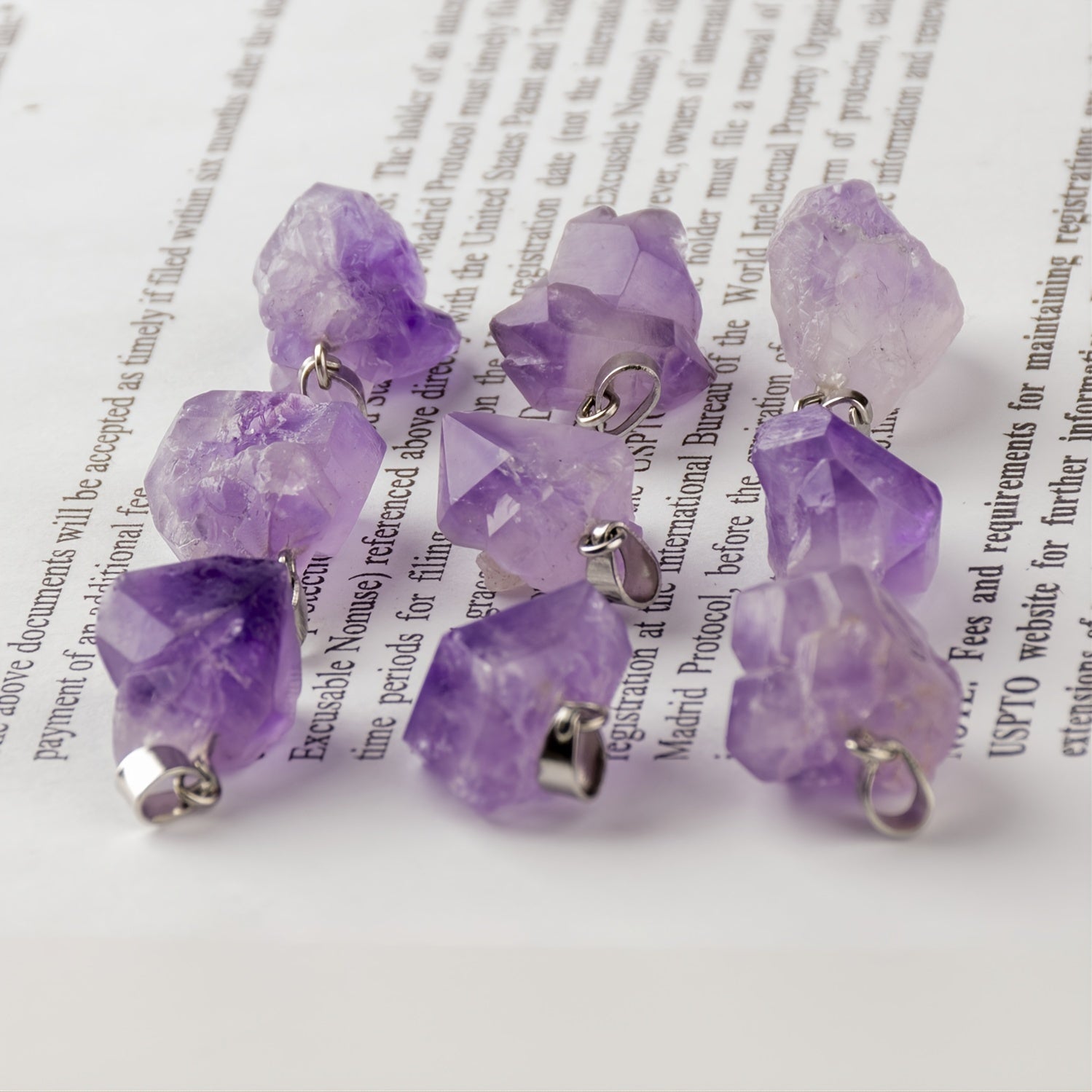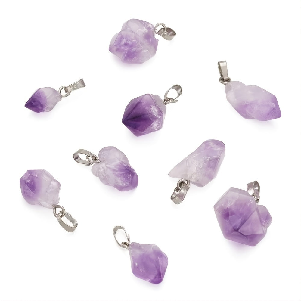 10Pcs Amethyst Rock Stone Pendants for Jewelry Making
