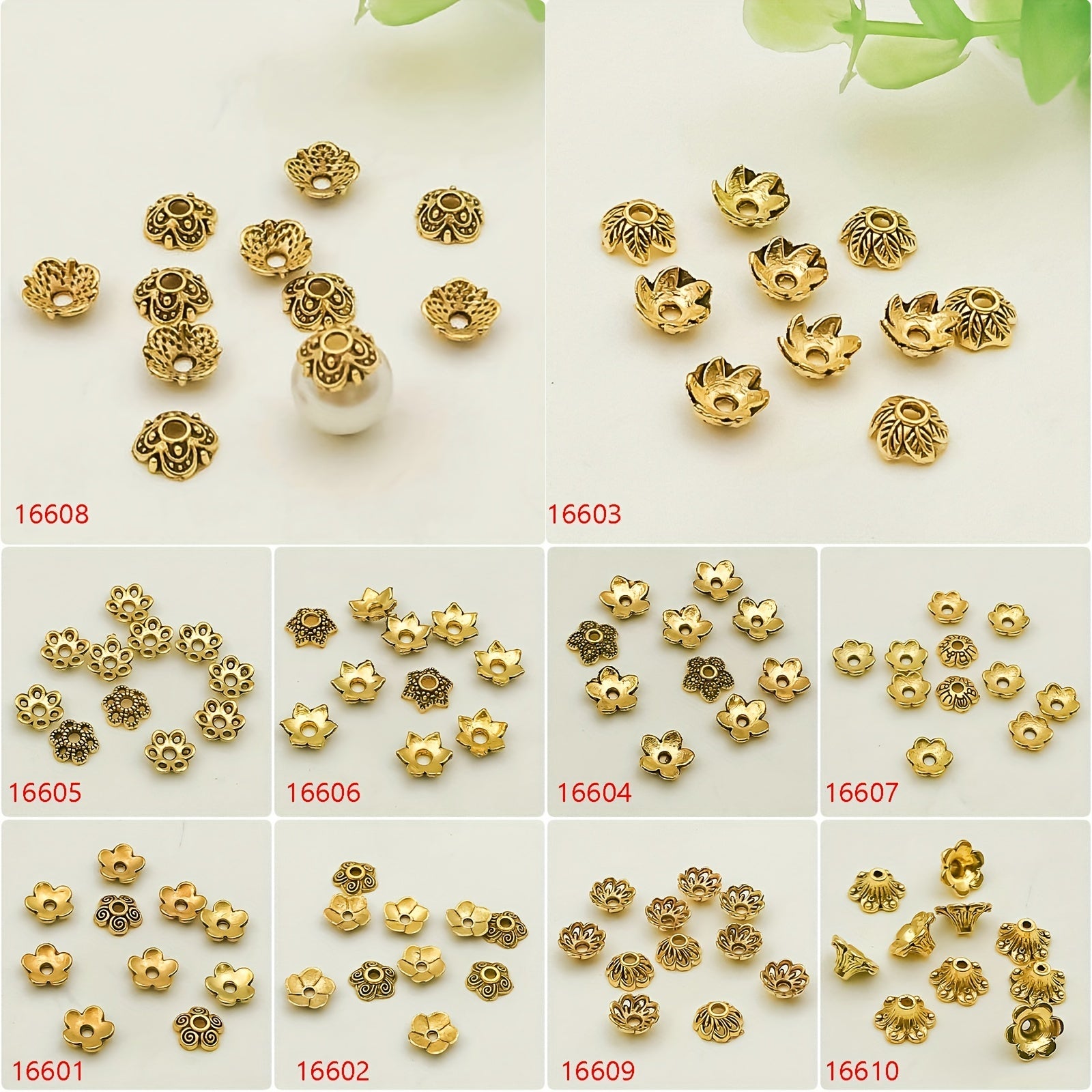 Enhance your jewelry making with these antique golden flower spacer beads cap cone end beads. Perfect for DIY jewelry projects.