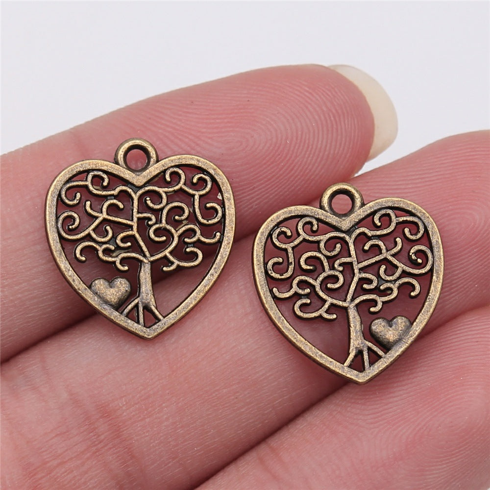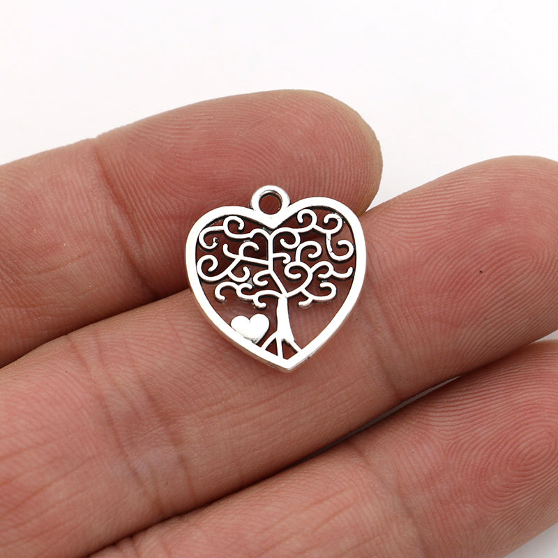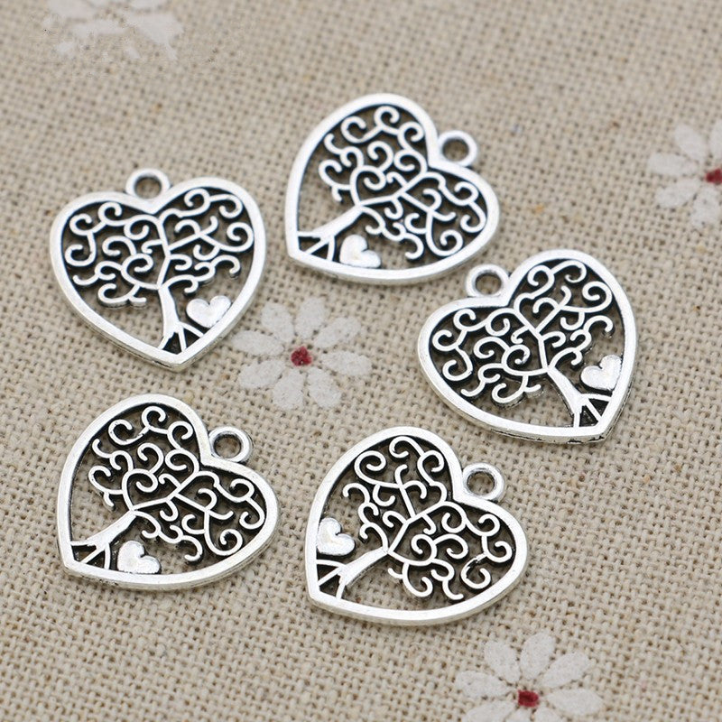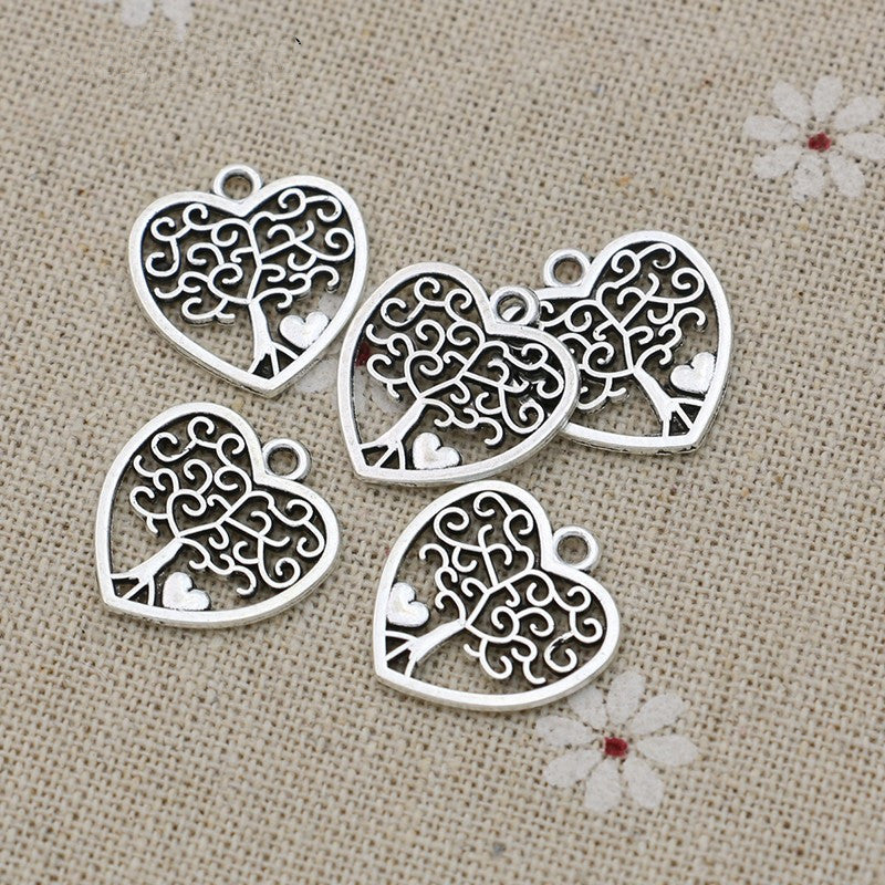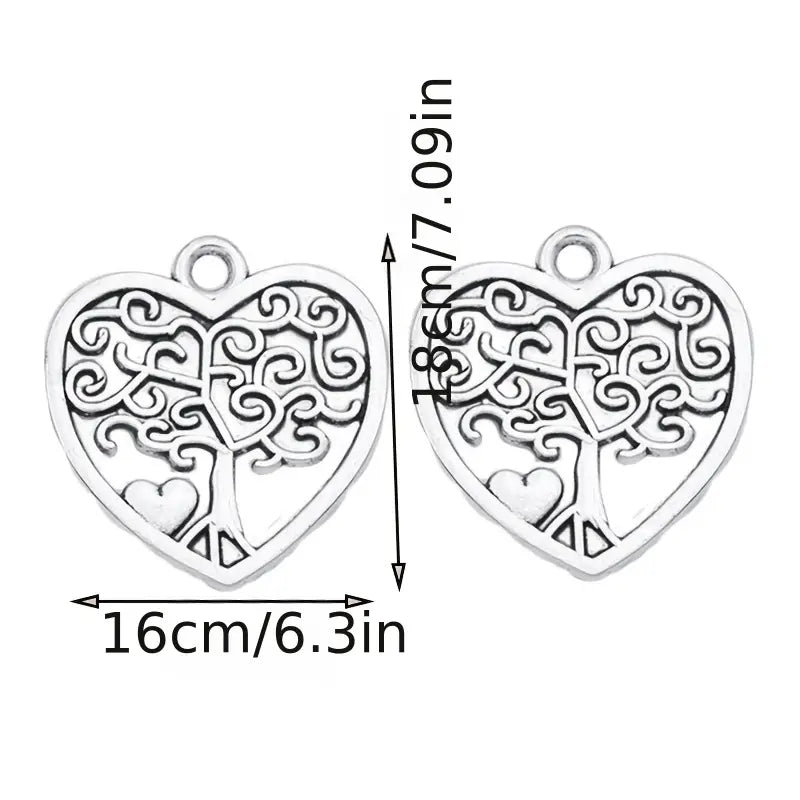 These antique silver plated charm pendants feature a tree and heart design, perfect for DIY earrings, bracelets, necklaces, and other accessories. Each pendant measures 18X16mm.
