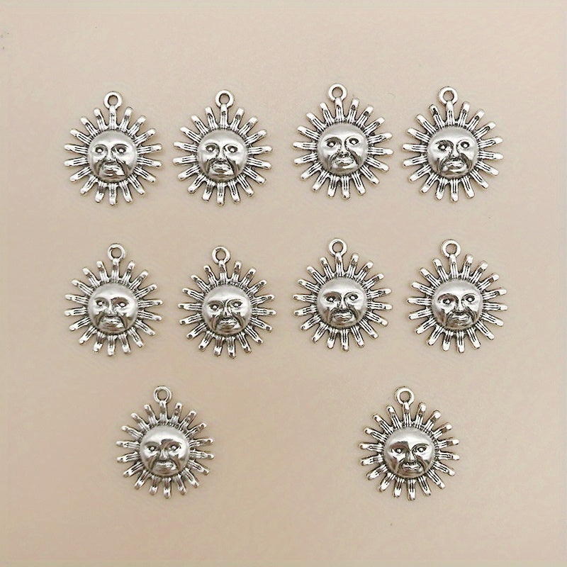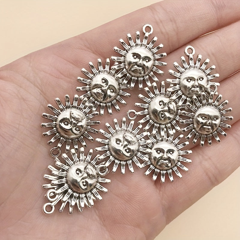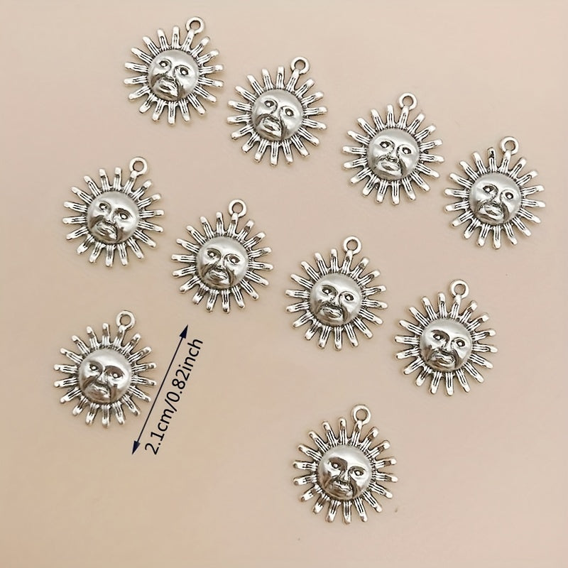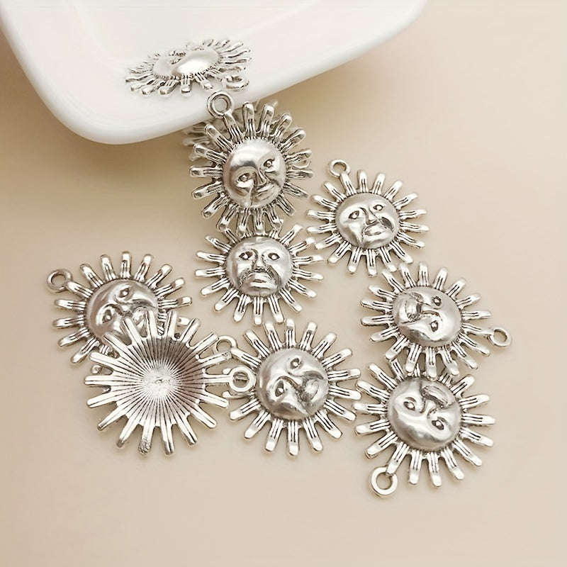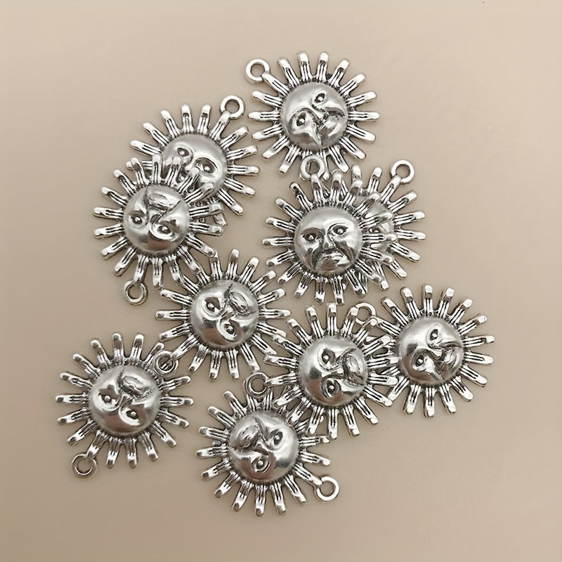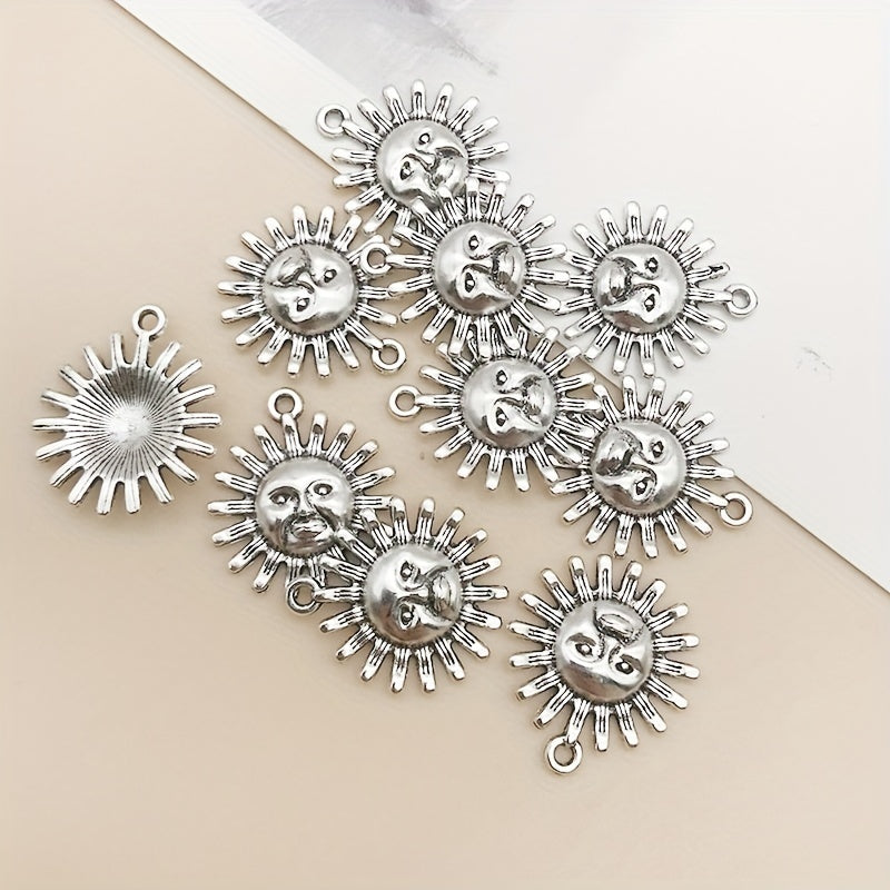 Add a touch of charm to your DIY jewelry projects with these sun shape charms. Made of zinc alloy with an antique silver finish, these pendants are perfect for necklaces, bracelets, and earrings.