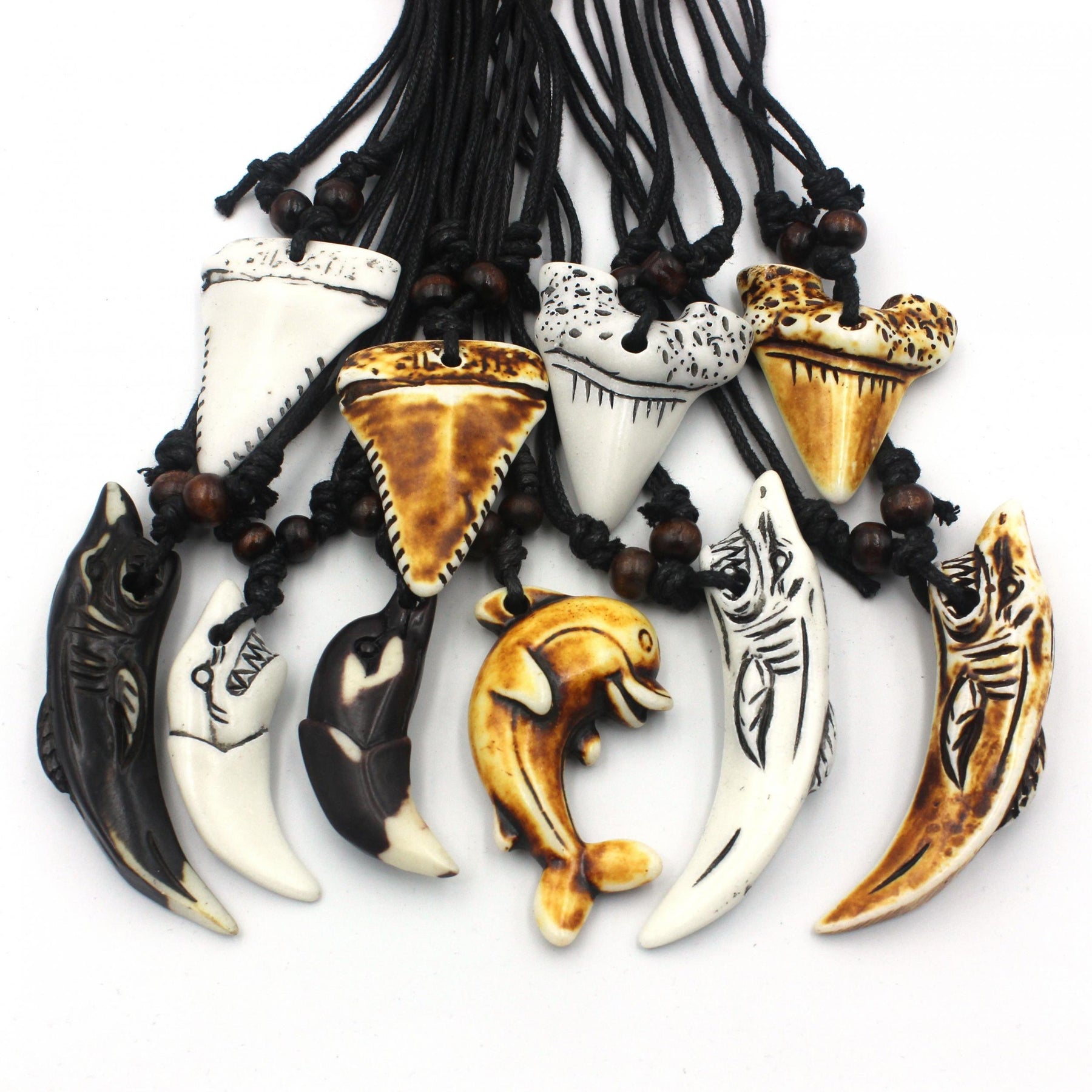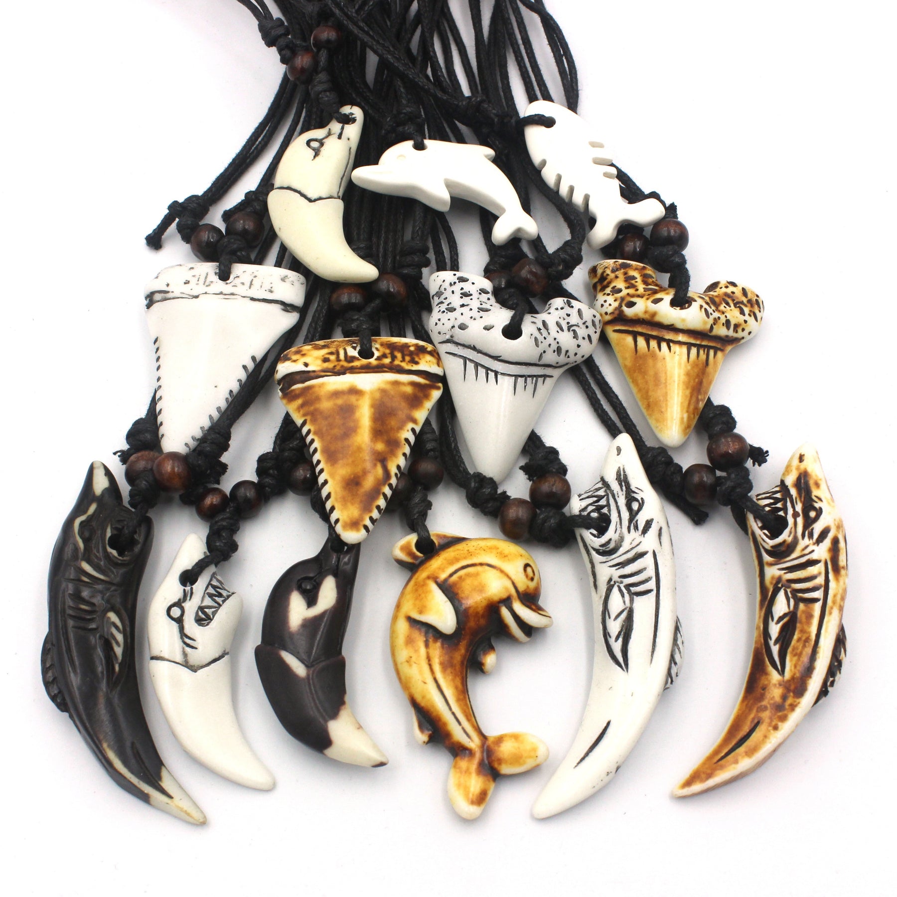 10pcs Assorted Shark Tooth Shape Pendant Necklaces Adjustable Lucky Jewelry