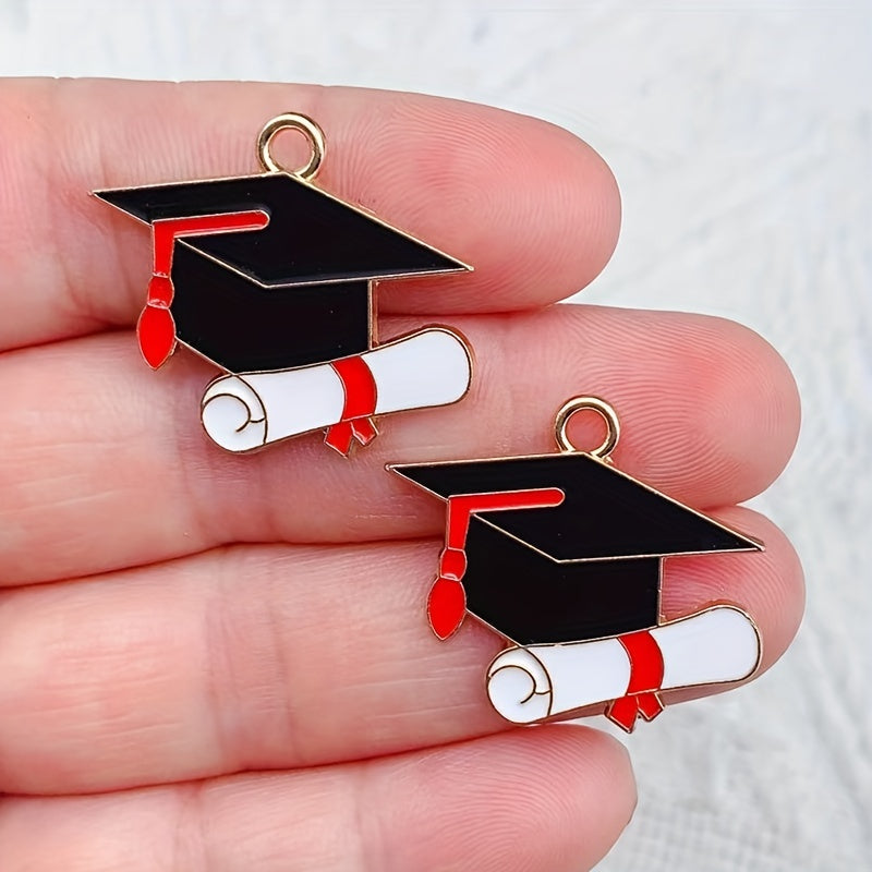 Celebrate graduation season with these creative bachelor hat charms. Perfect for a graduation party gift or keepsake. The charms are in the shape of doctor hats, adding a touch of academic flair.