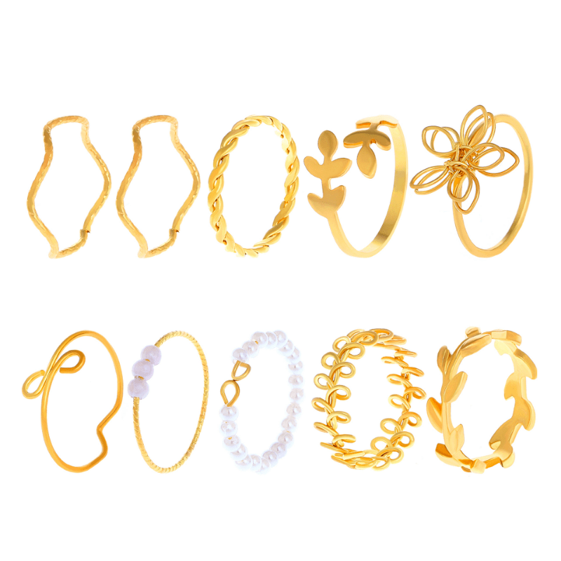 Elevate your summer look with this boho jewelry set featuring V shape, wave, and flower patterns. Mix and match to create the perfect decor for your summer vacation.