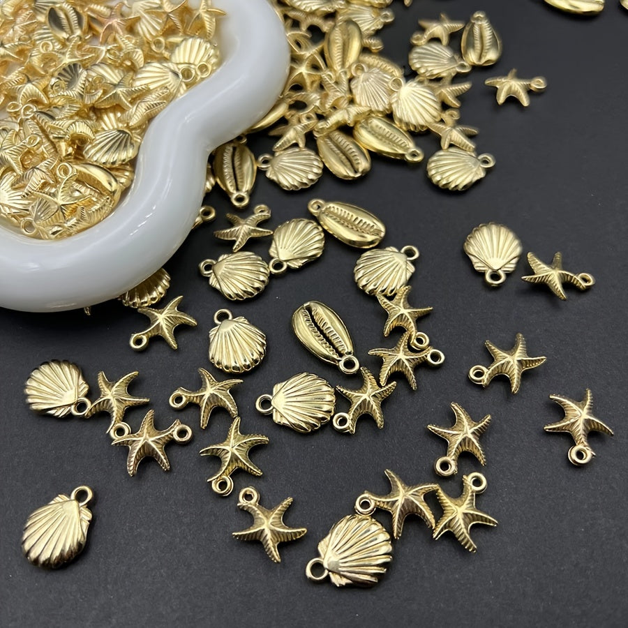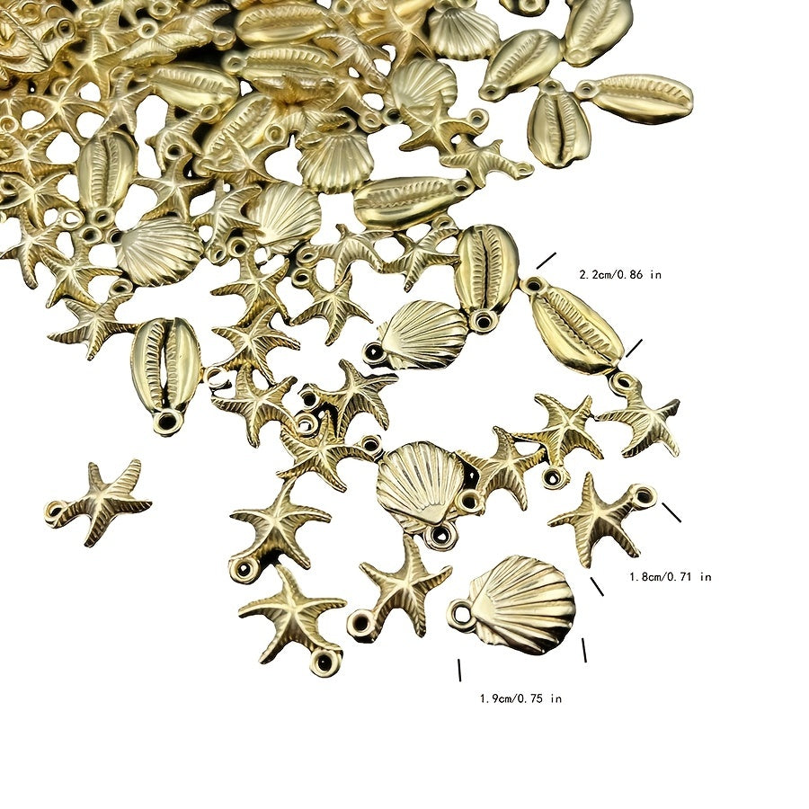 Enhance your jewelry collection with these 10pcs golden charms accessories. Perfect for both men and women, use them to create unique necklaces, bangles, and anklets. Includes starfish and shell charms.