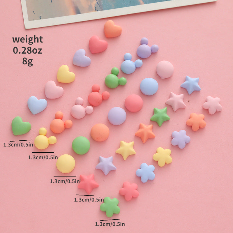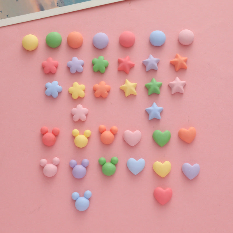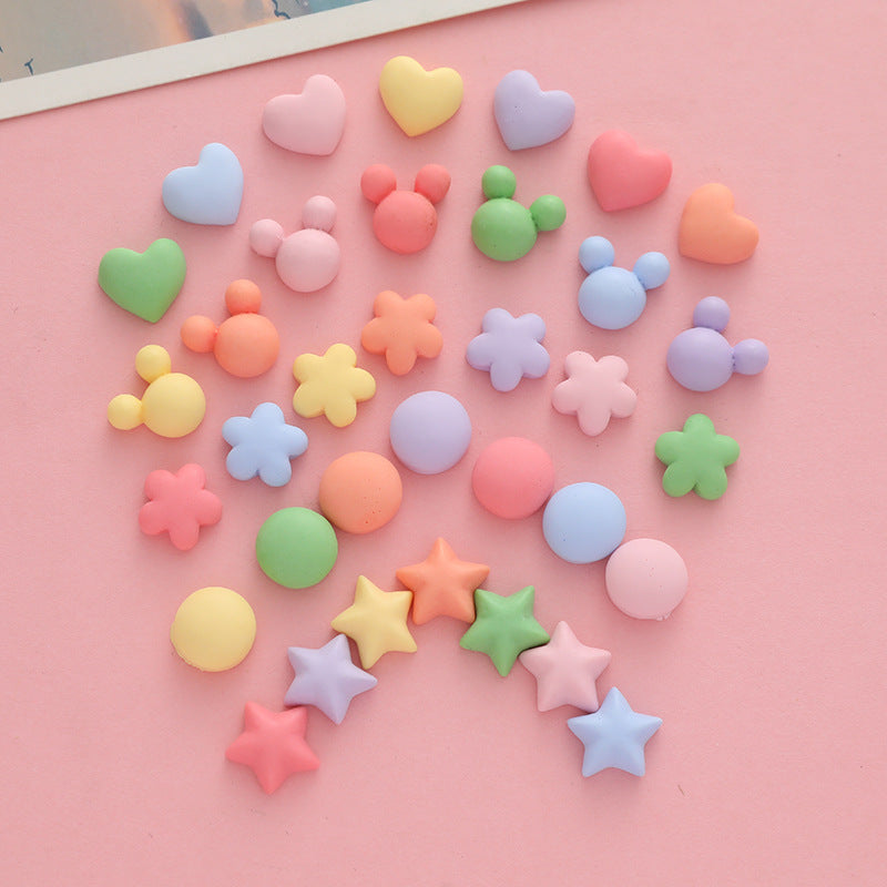 Get creative with these 10pcs resin beads in peach heart, love star, and flower shapes. Perfect for DIY projects on mobile phone cases, hair accessories, and more.