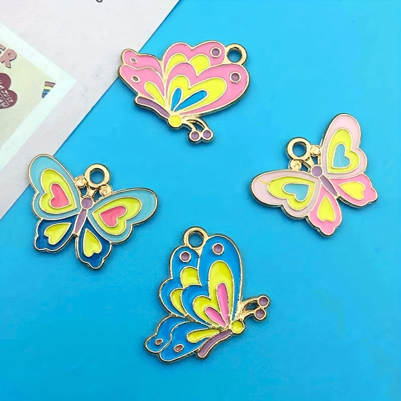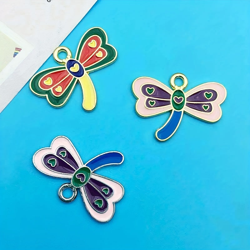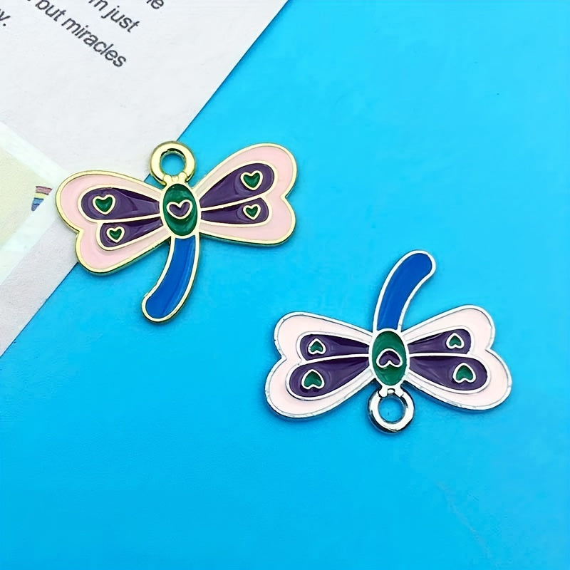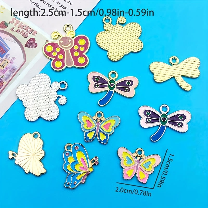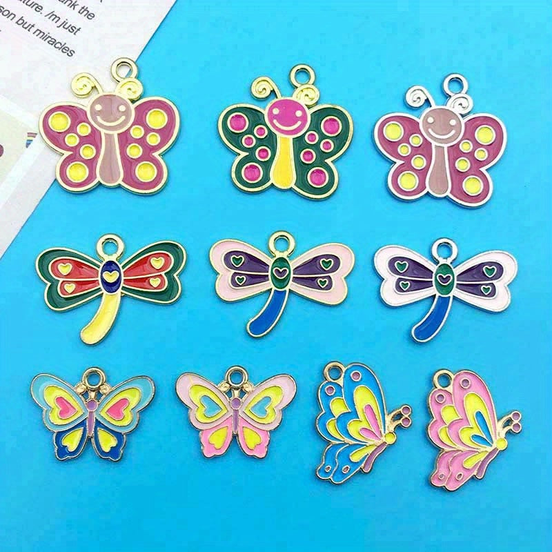 This set includes 10 mixed enamel butterfly and dragonfly alloy pendant charms, perfect for creating necklaces, bracelets, earrings, and other crafts.