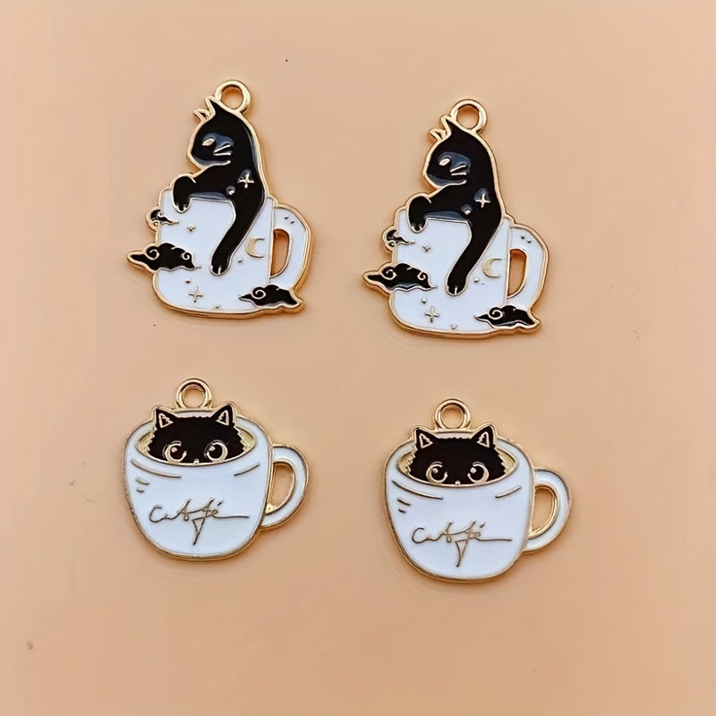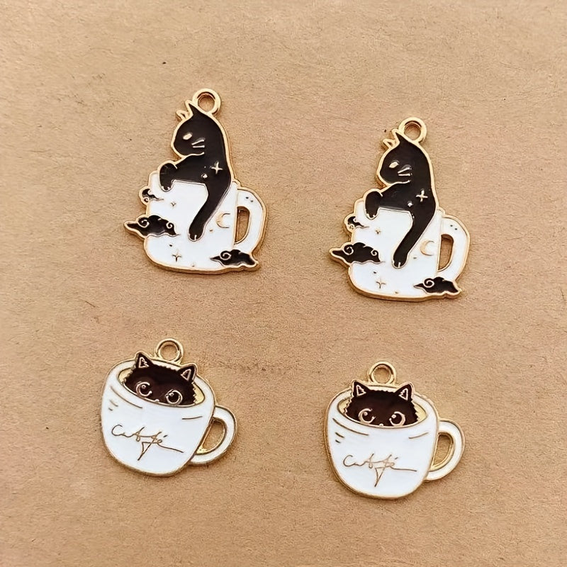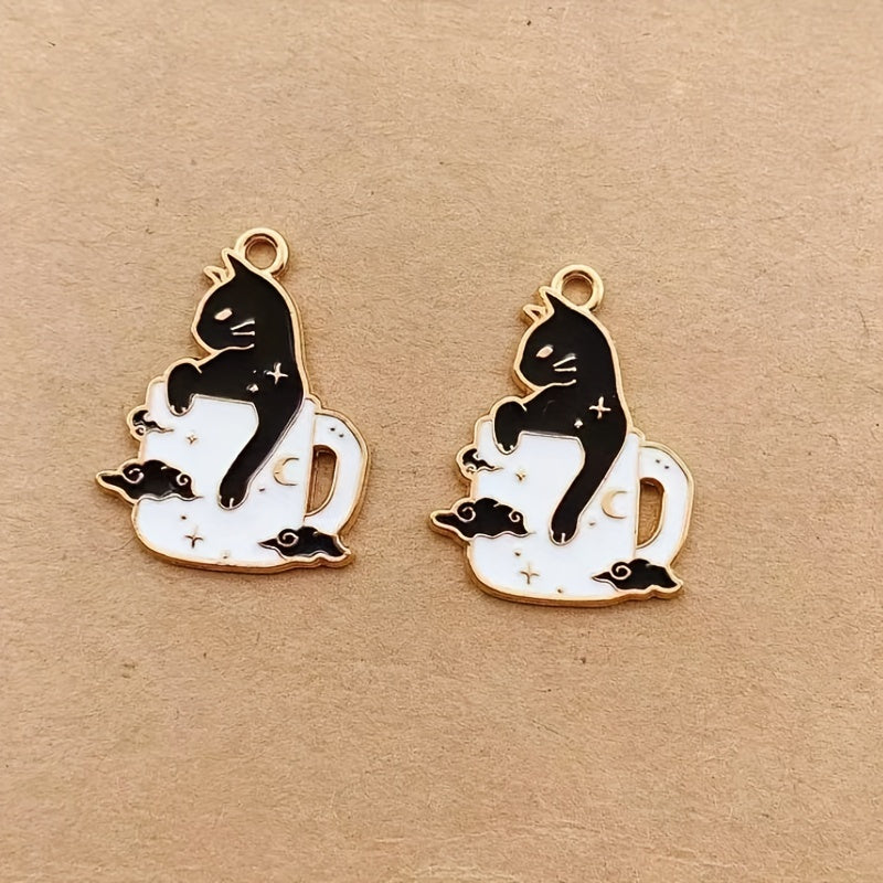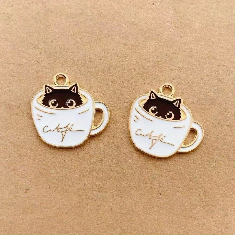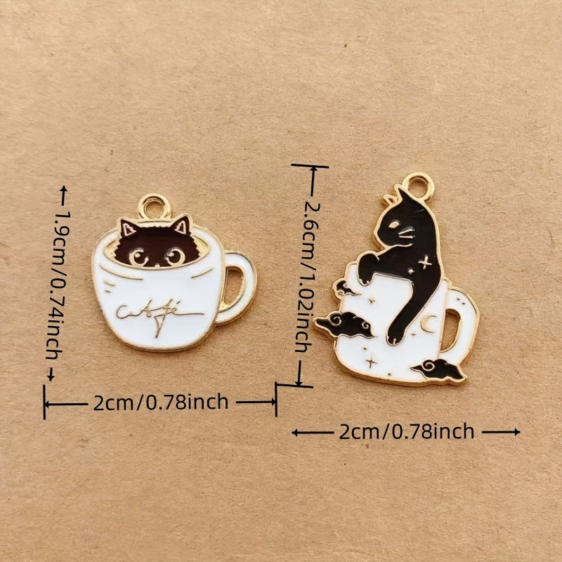 Create unique earrings, bracelets, necklaces, and more with these 10 enamel and cup cat alloy pendants. Perfect for crafting handmade accessories.