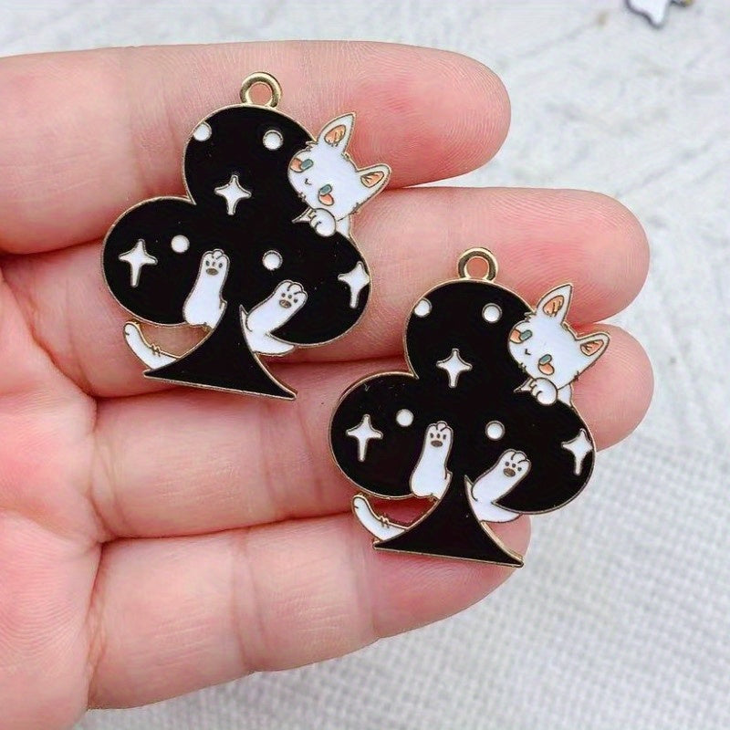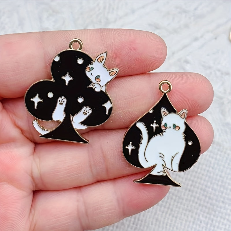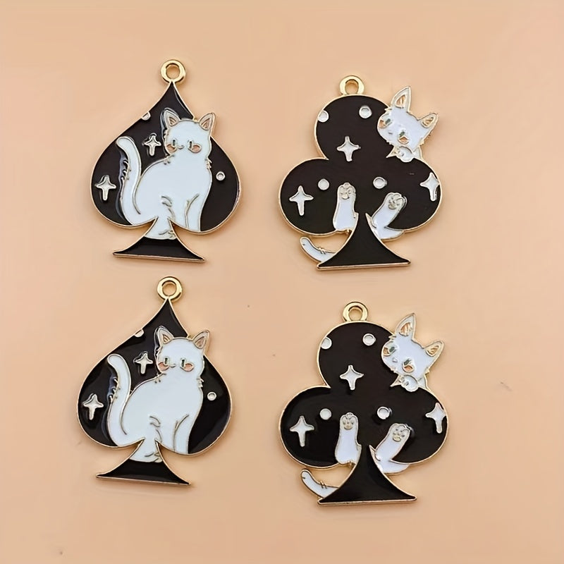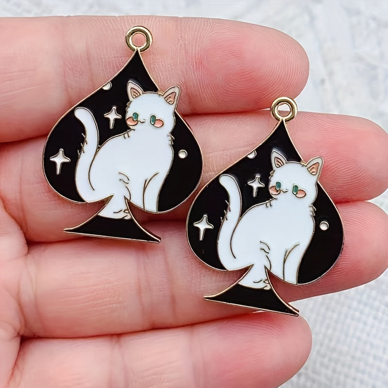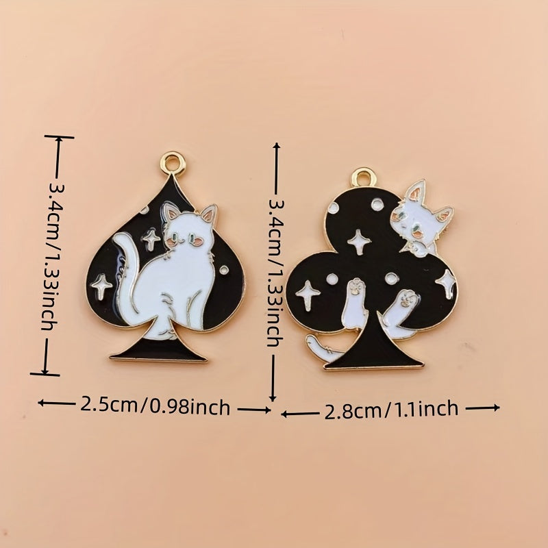 10pcs Enamel Poker Cat Pendants for DIY Jewelry Making