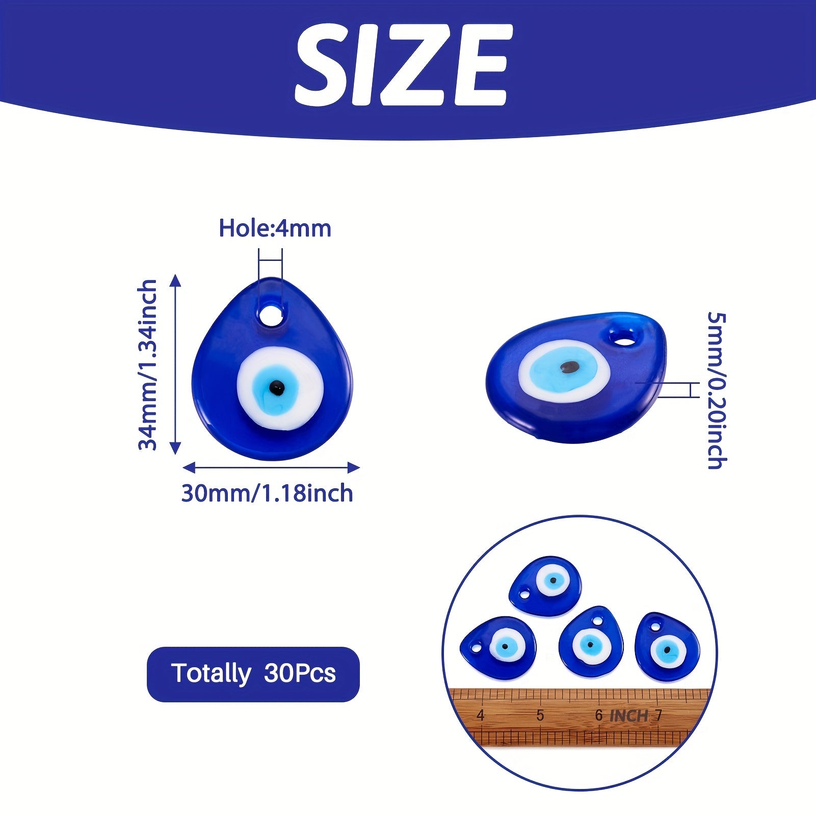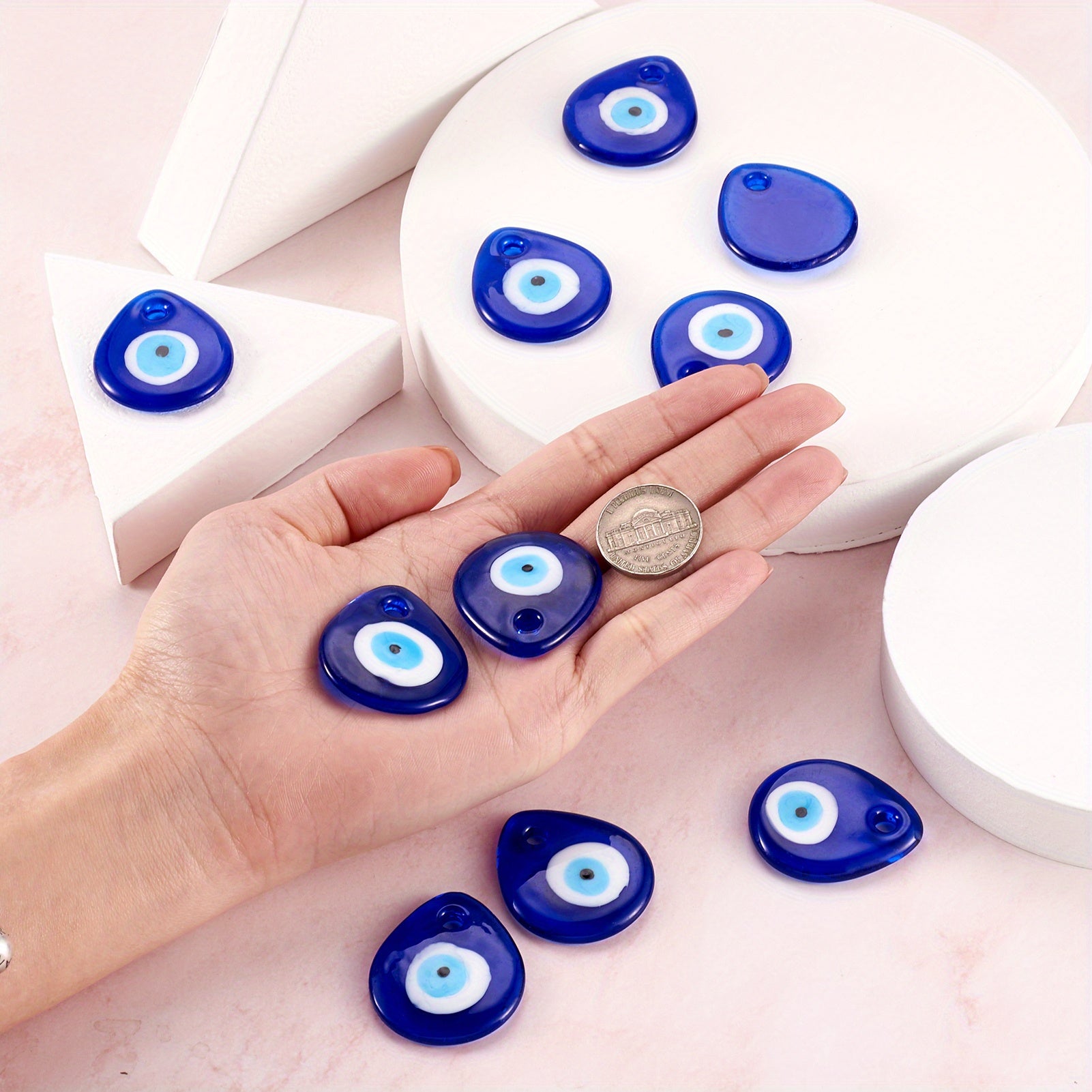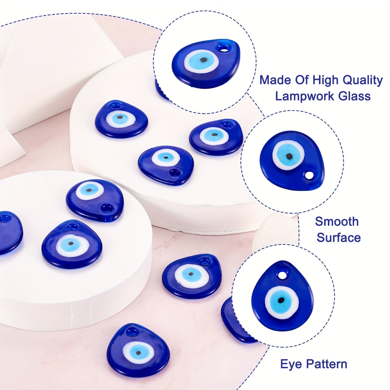 Add a touch of mystique to your jewelry creations with these Evil Eye glass teardrop pendants. Perfect for necklaces, bracelets, and earrings.