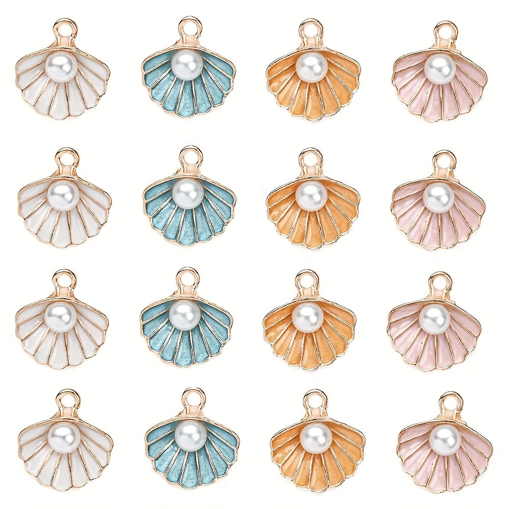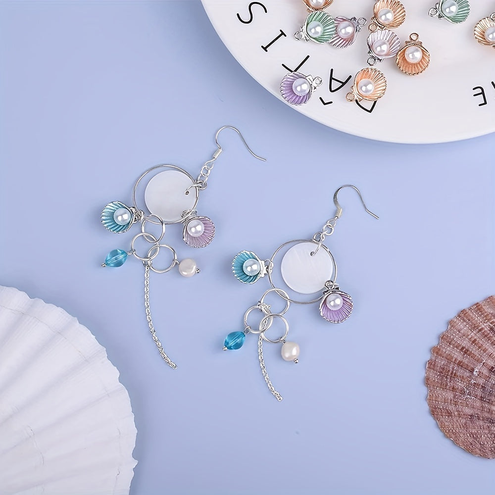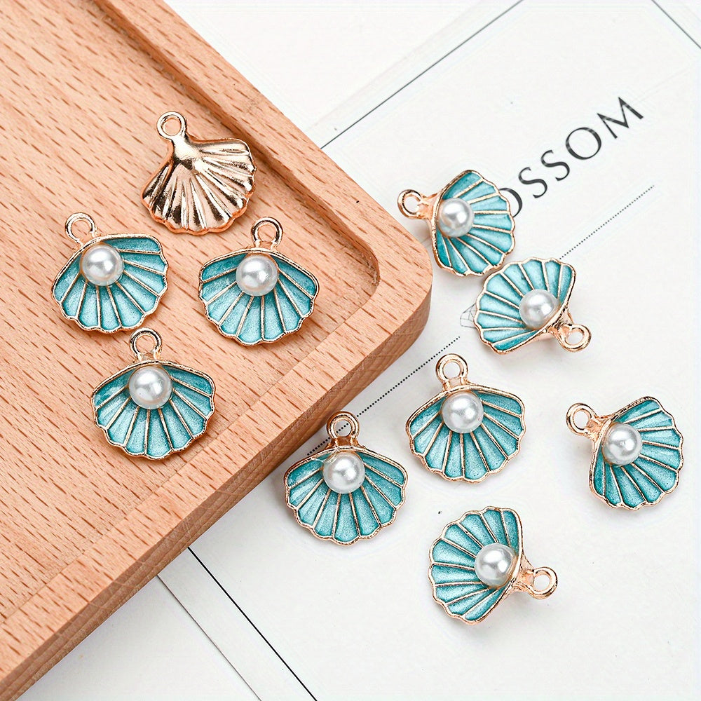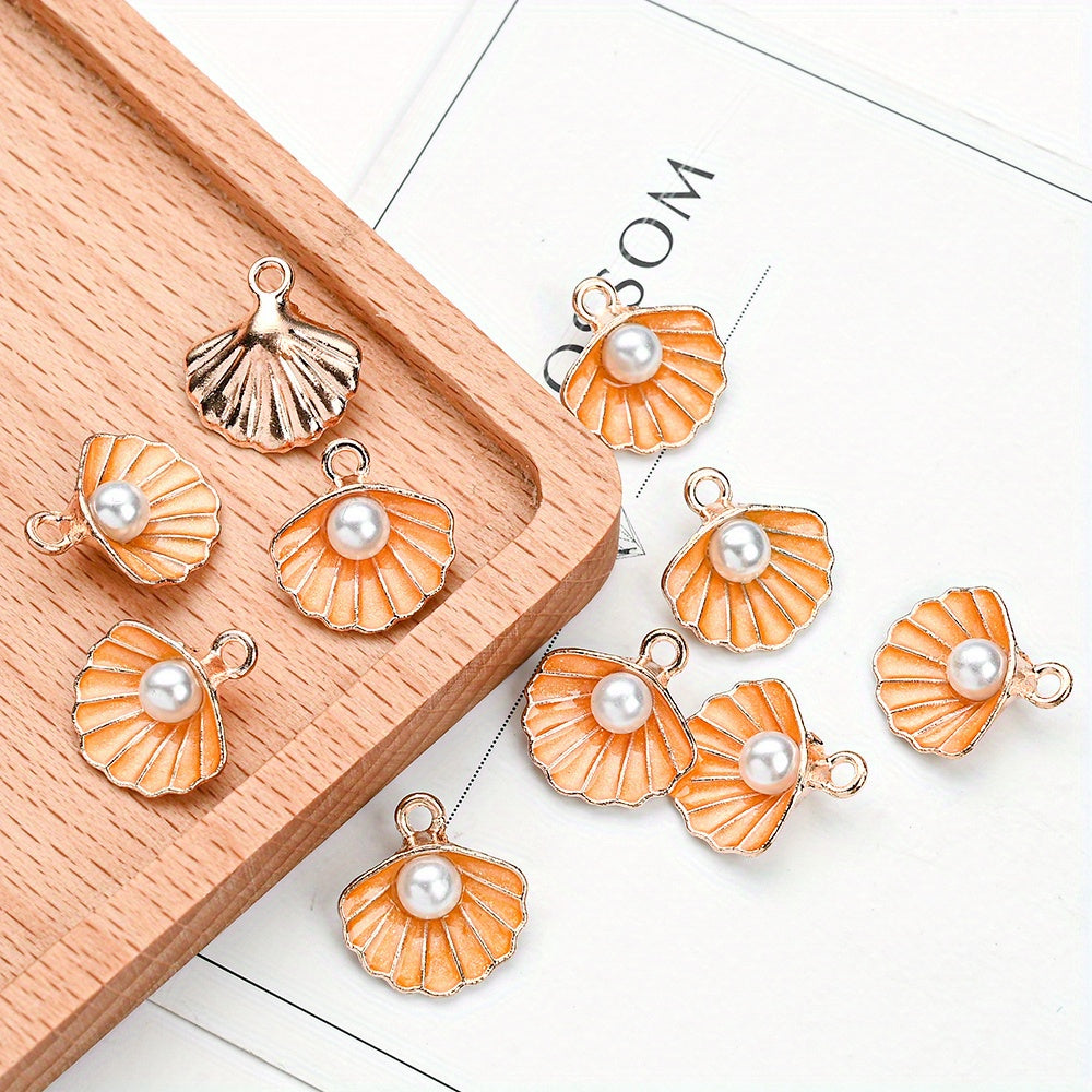 10pcs Faux Pearl Decor Enamel Shell Pendant DIY Accessories