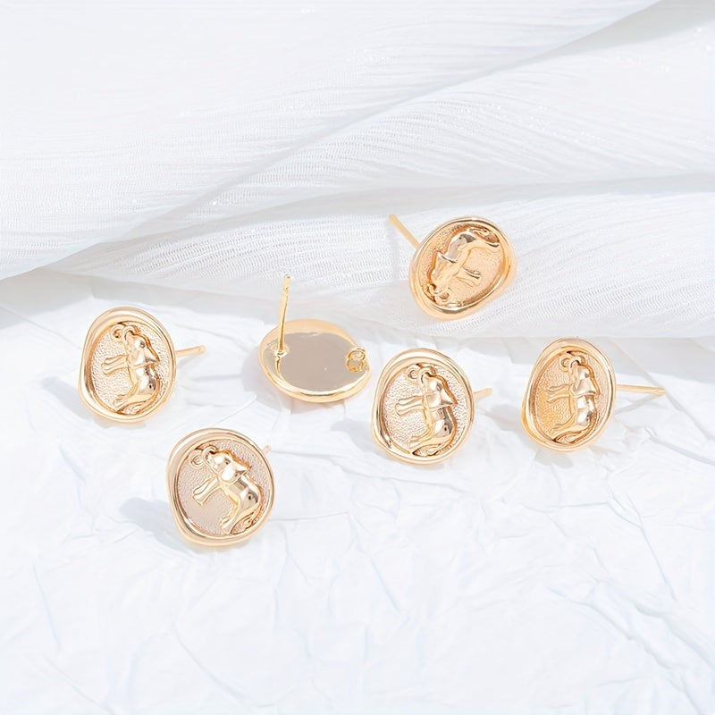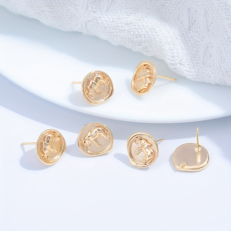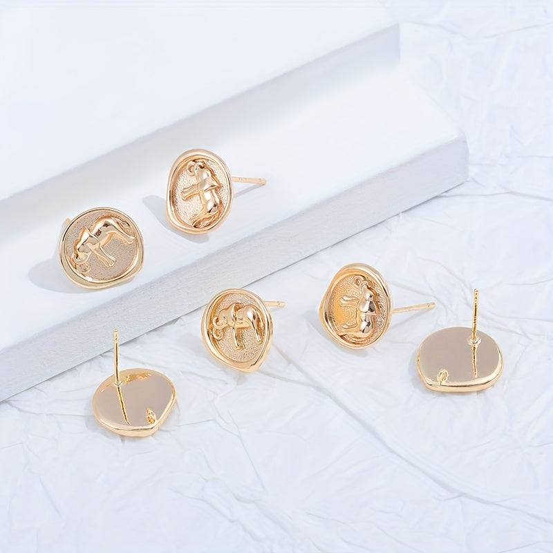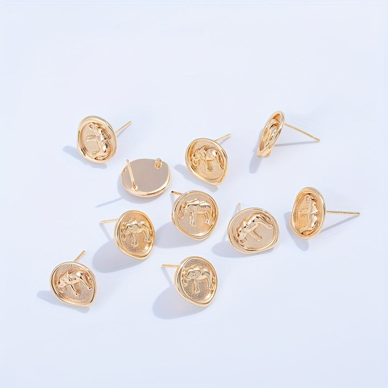 Add a touch of elegance to your DIY earrings with these golden elephant pattern round copper ear studs. Each stud comes with a hanging feature for creating drop earrings.