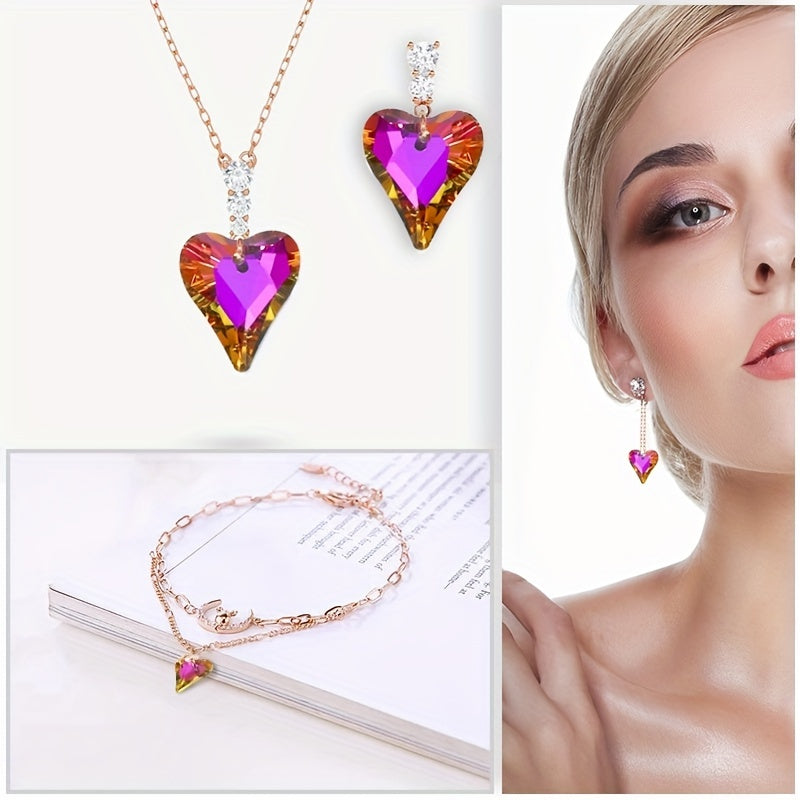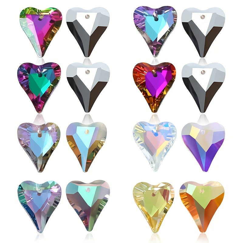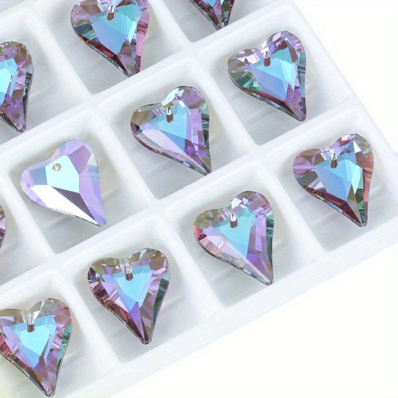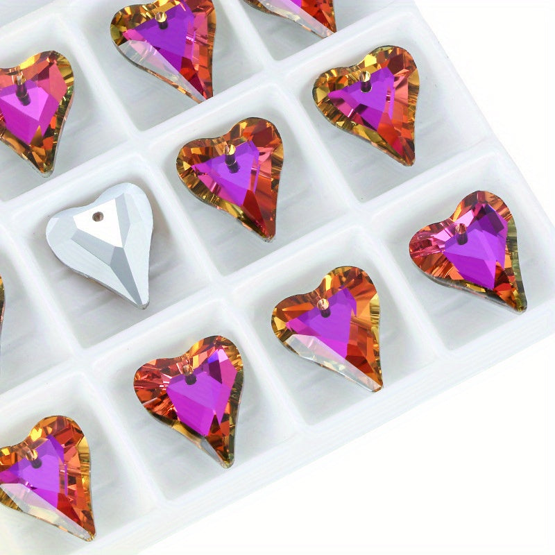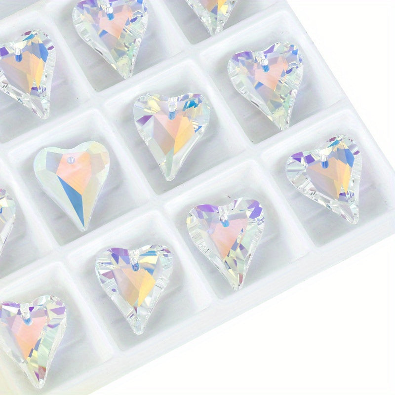 10pcs Heart Pendants Colorful Glass Crystal DIY Jewelry Art Craft Necklace