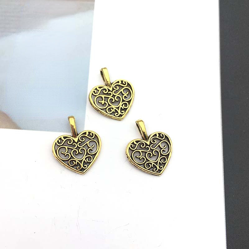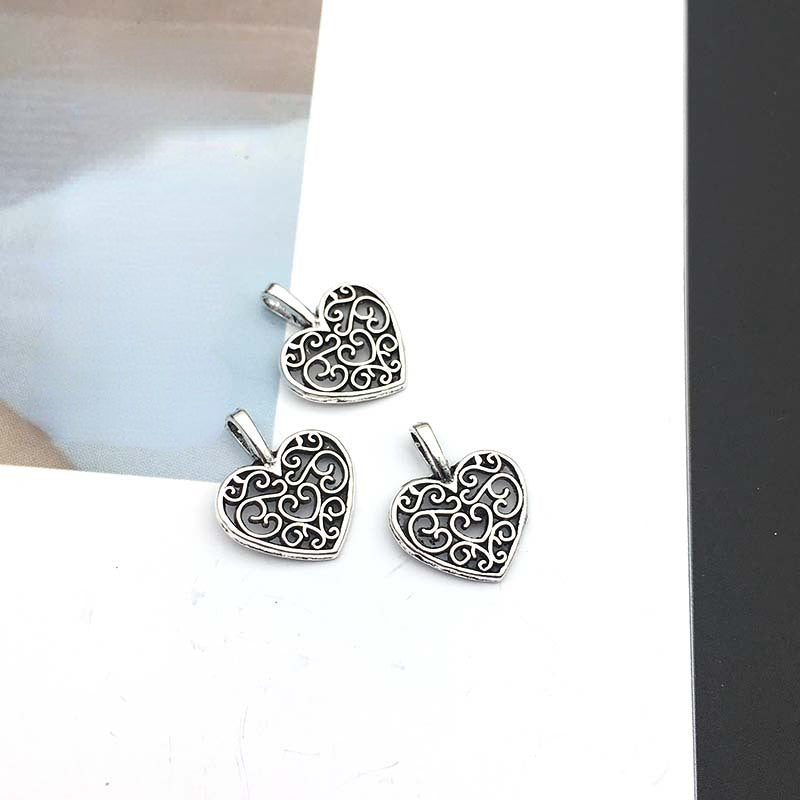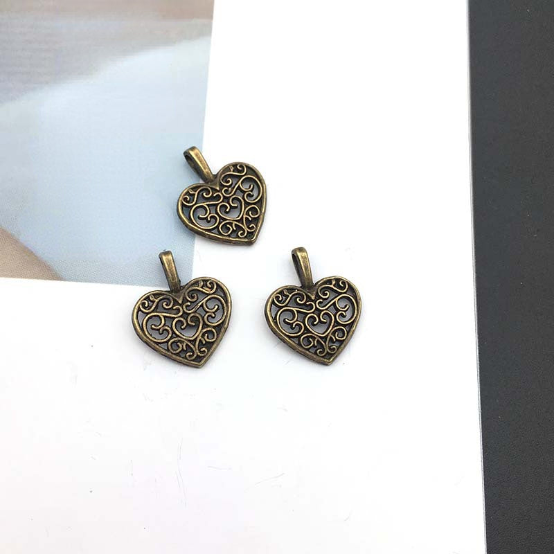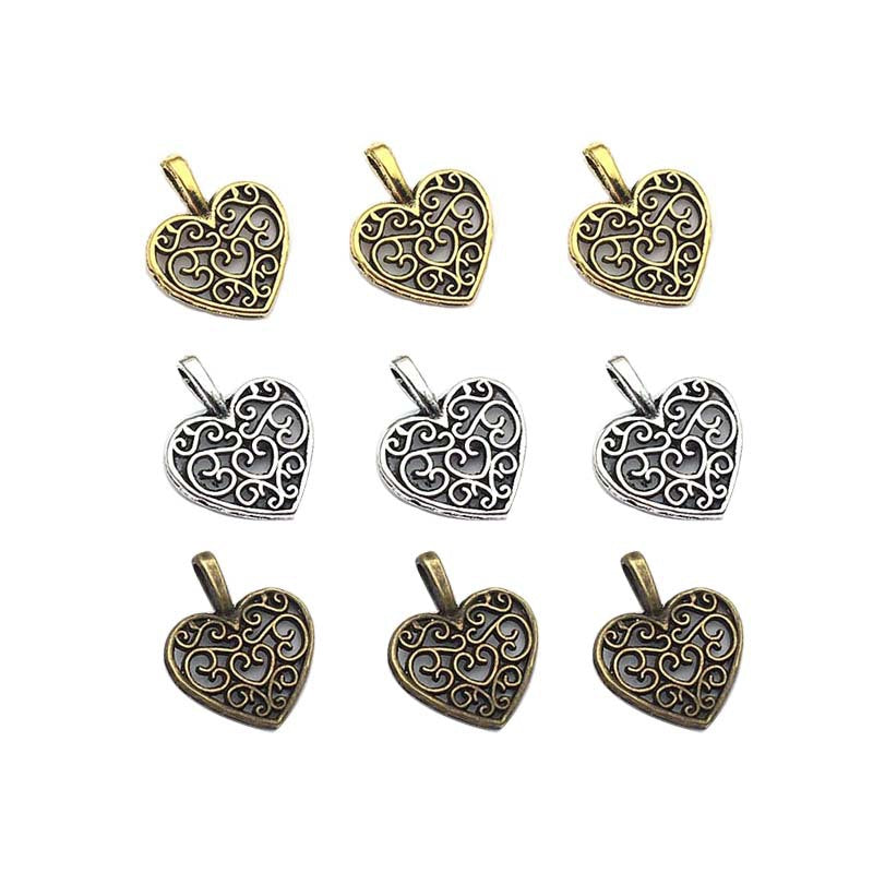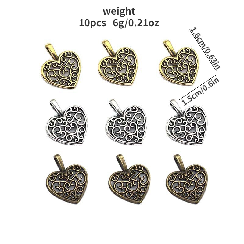 Add a touch of vintage charm to your DIY jewelry projects with these heart-shaped alloy pendants. Perfect for making bracelets and necklaces.