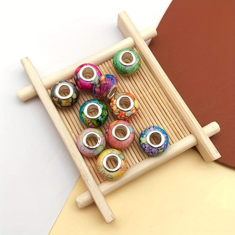 This set includes 10 large hole beads in assorted ink gradient colors, perfect for making your own bracelets and necklaces. These beads are great for jewelry making projects.