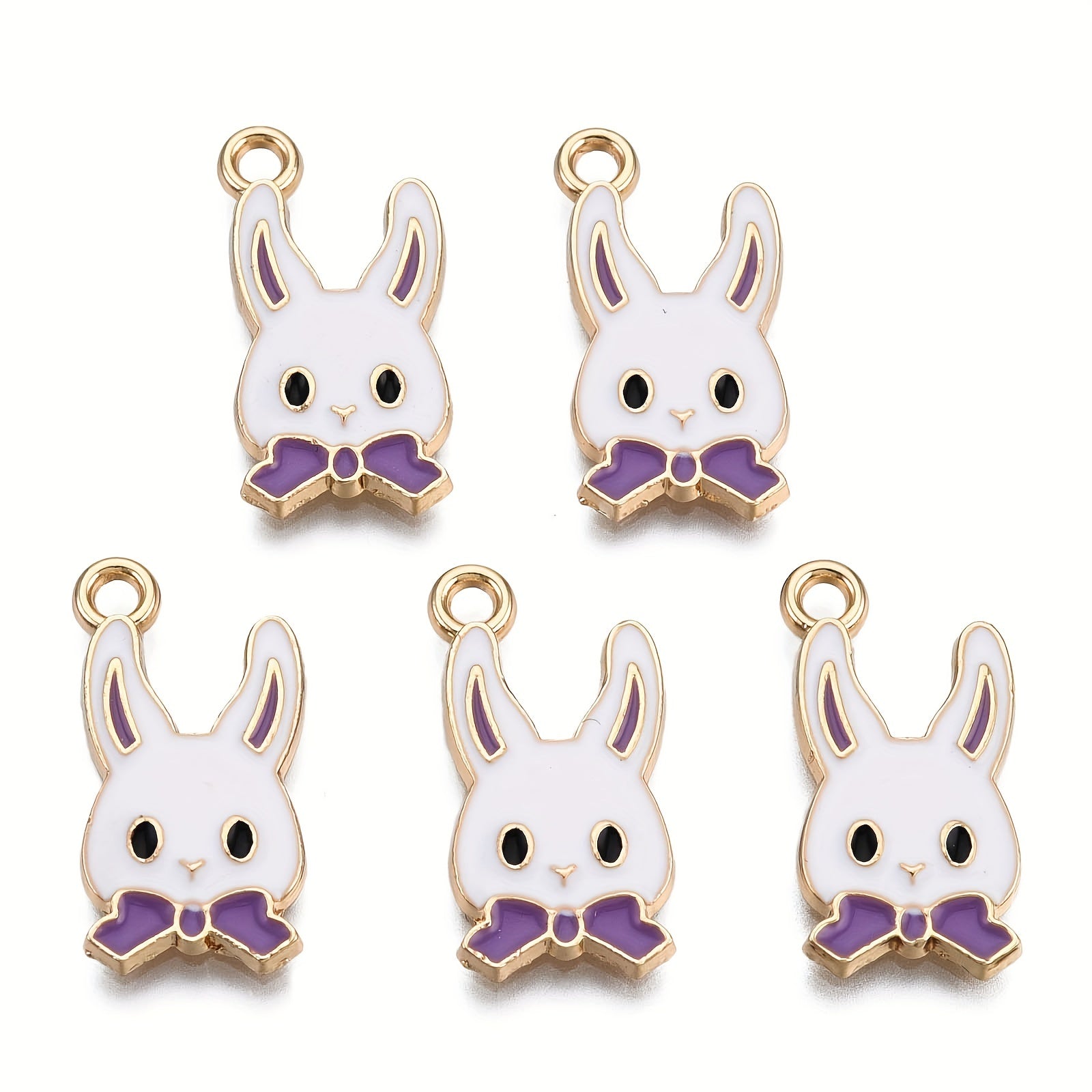 Add a touch of whimsy to your jewelry creations with these purple alloy enamel bunny pendants. Perfect for necklaces, bracelets, and earrings.