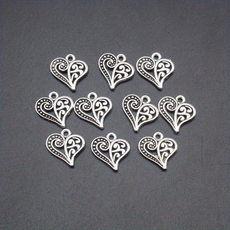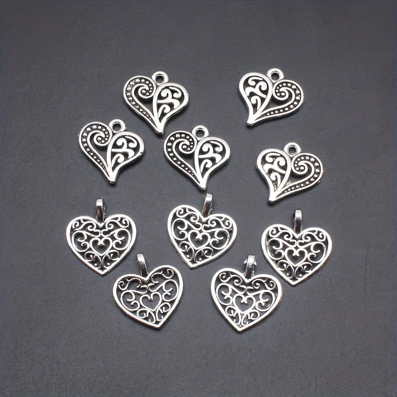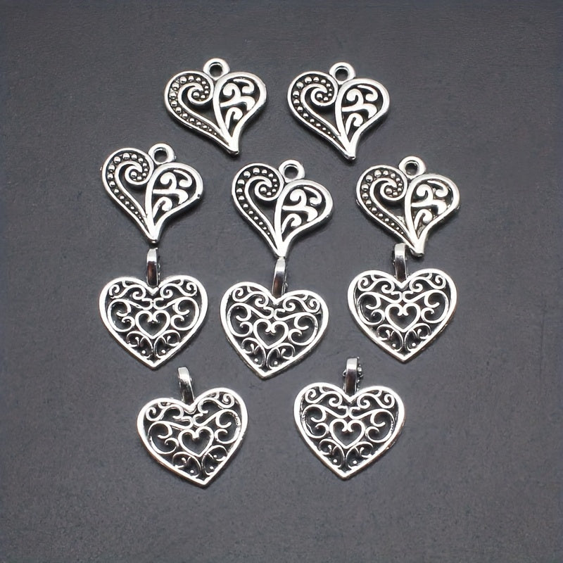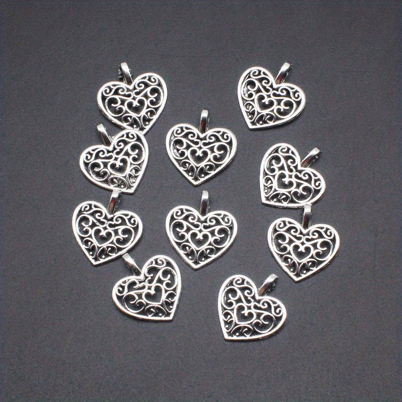 Create beautiful earrings, bracelets, necklaces, and more with these 10pcs silvery hollow heart alloy pendants. Perfect for DIY projects and accessorizing.