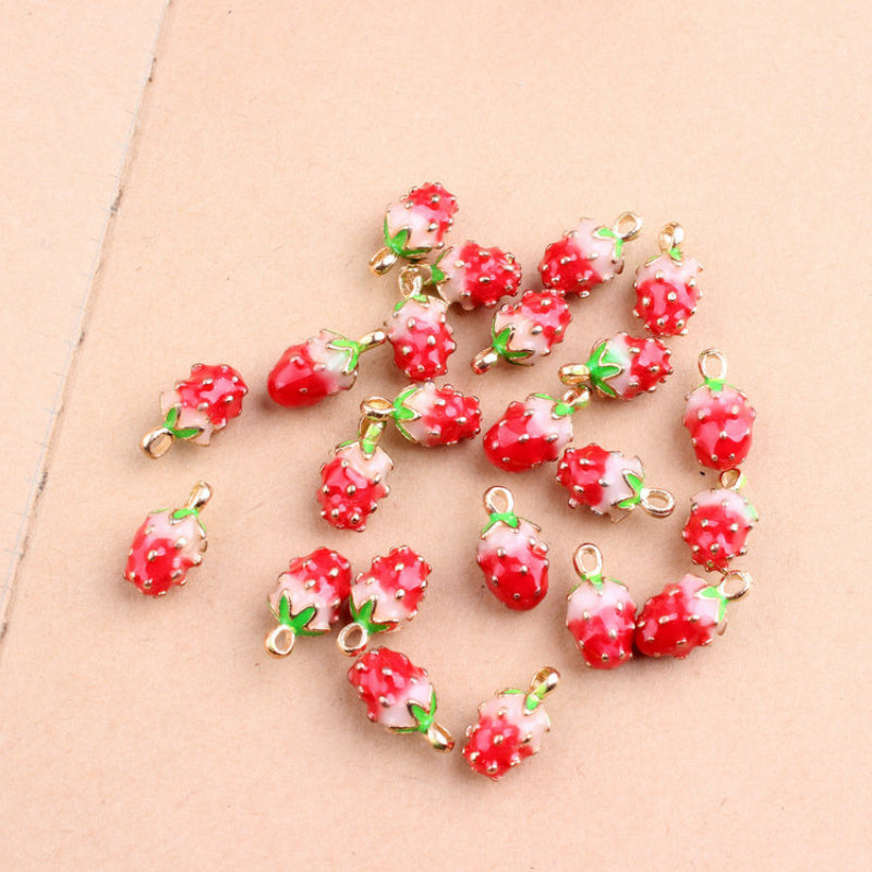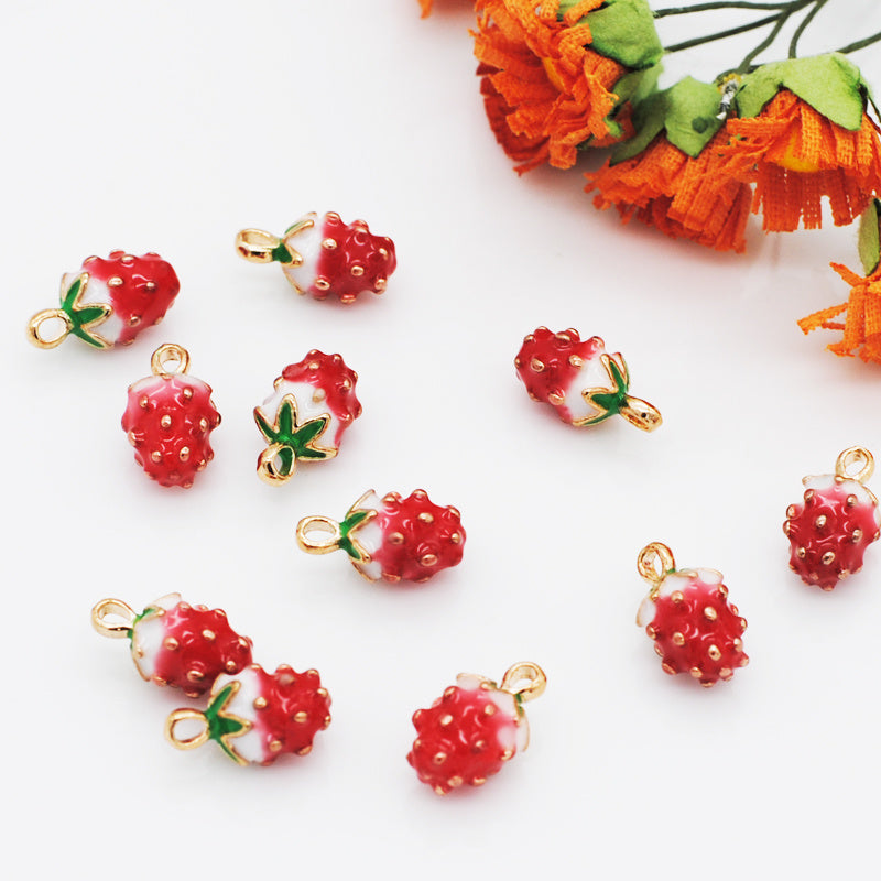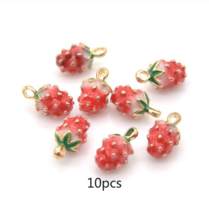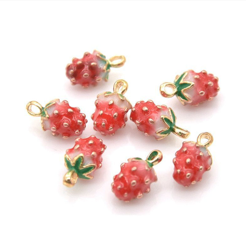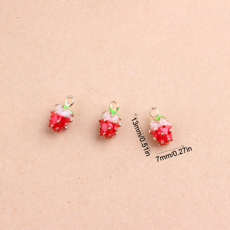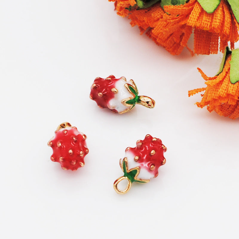 10pcs Strawberry Fruit Enamel Pendant DIY Earrings Bracelet Necklace Accessories