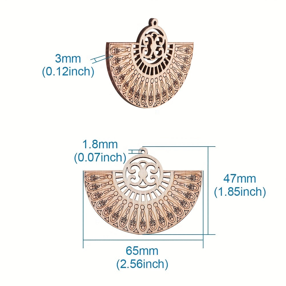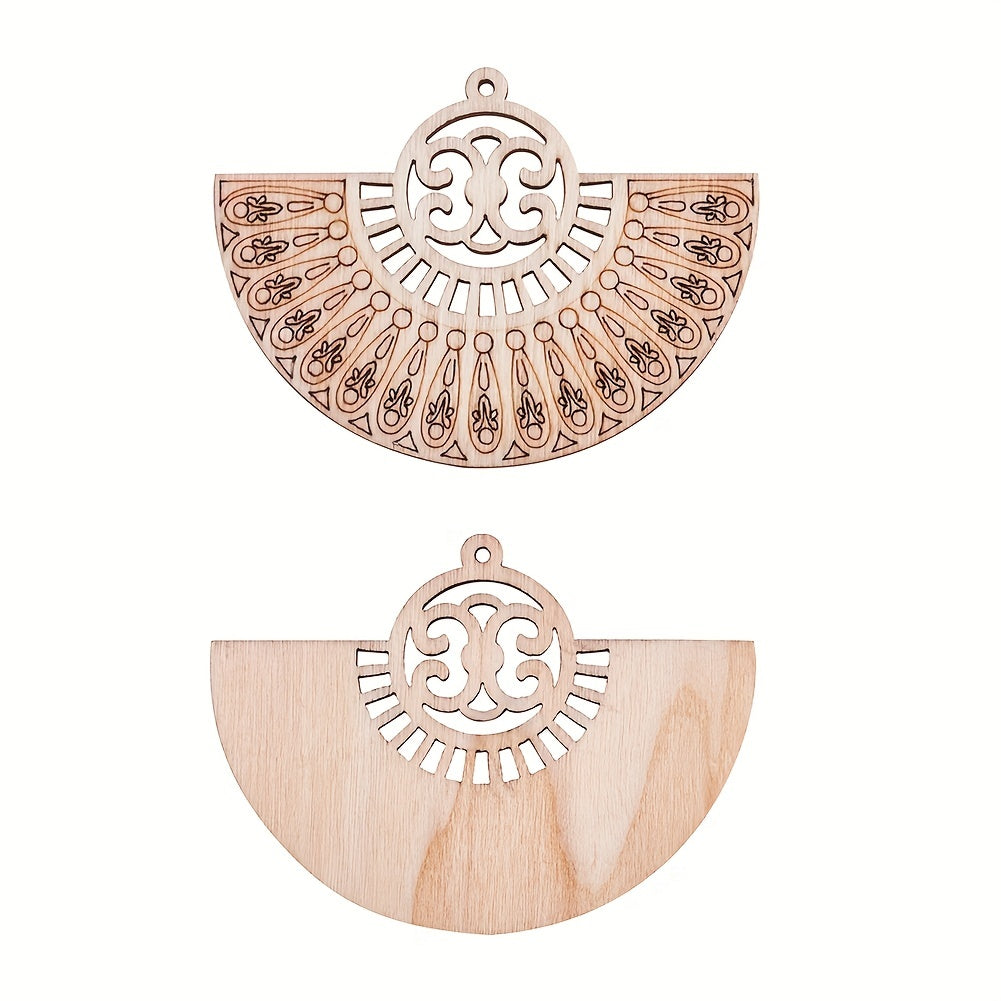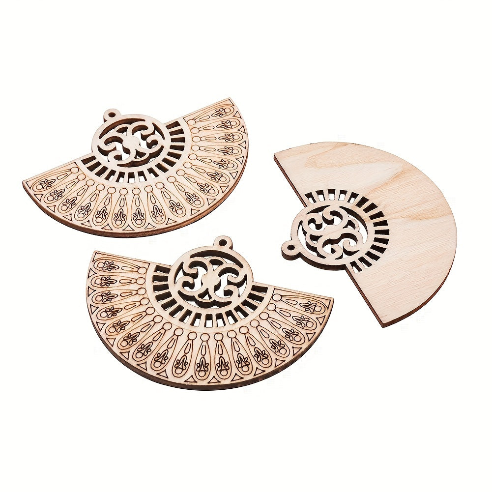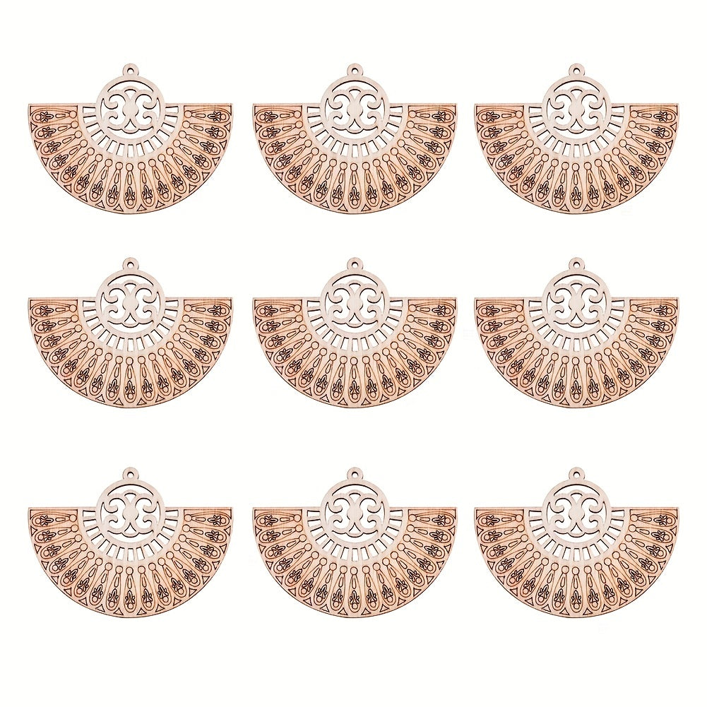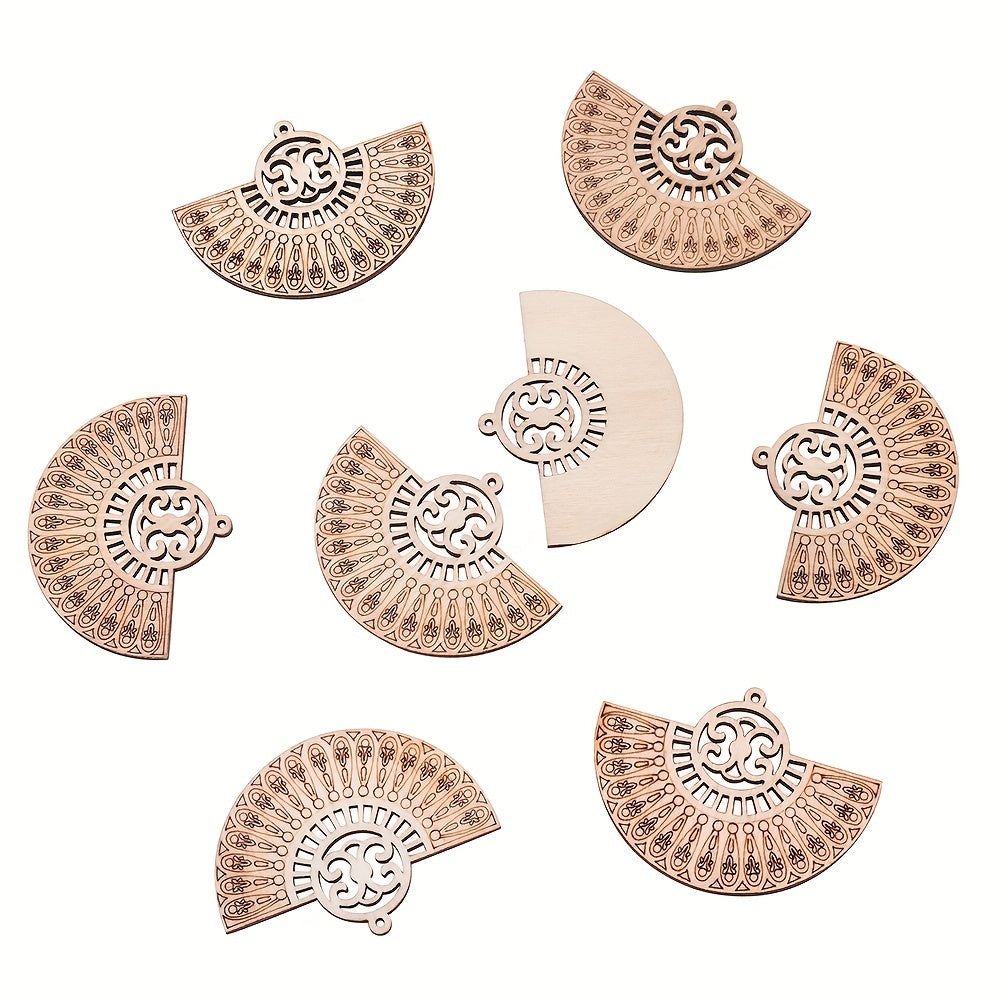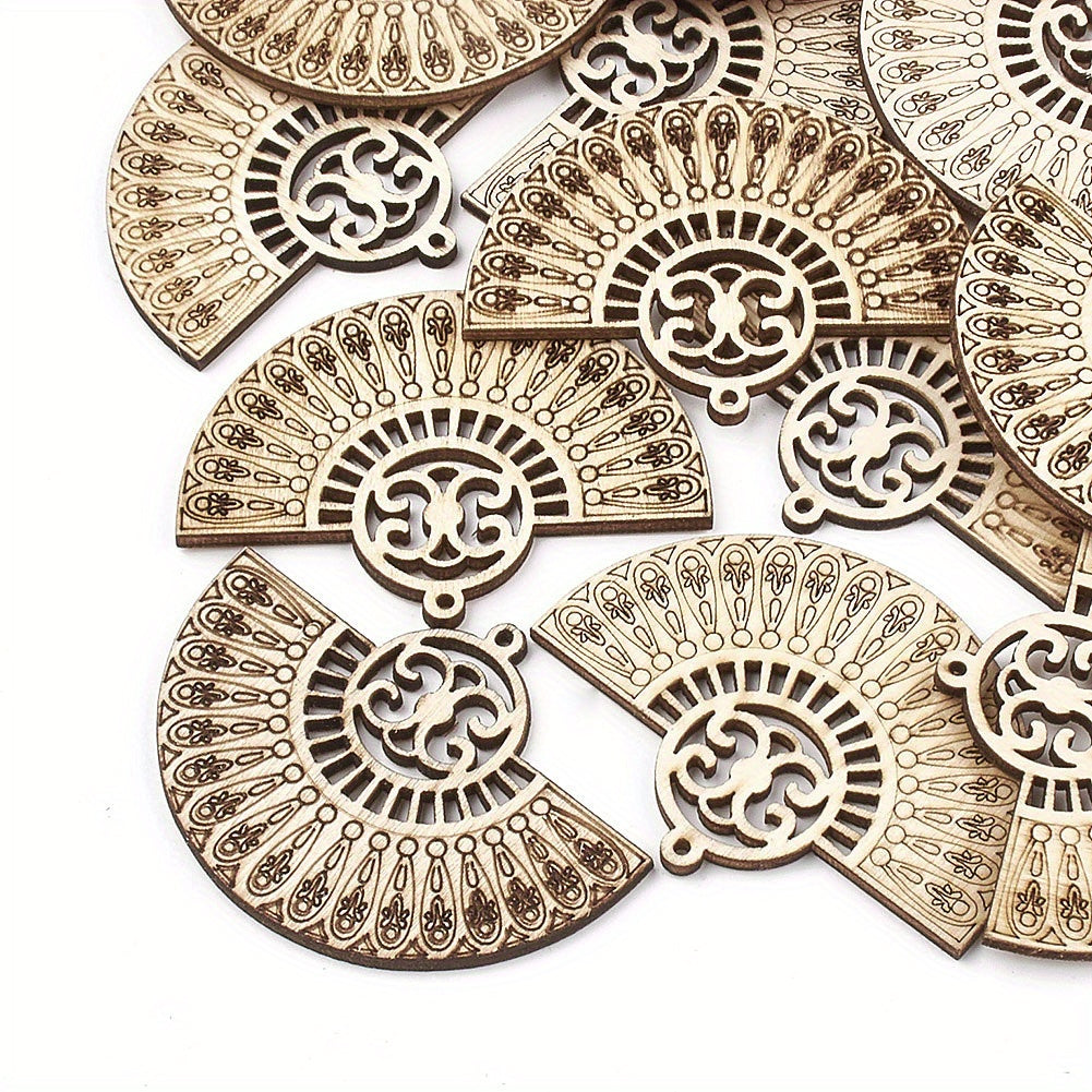 Enhance your jewelry making with these 10 wooden fan pendants charms. Perfect for creating DIY necklaces, bracelets, and earrings.