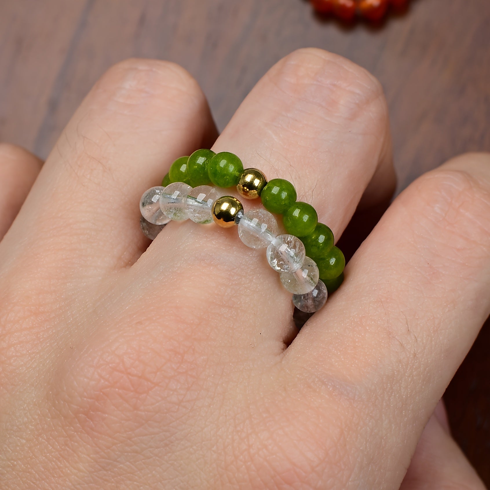 Celebrate birthdays with this stunning 12-month birthstone ring featuring 14k gold plated beads and bohemian style. Each stone has depth variations, making it a unique and thoughtful gift for birthdays, Valentine's Day, or anniversaries.
