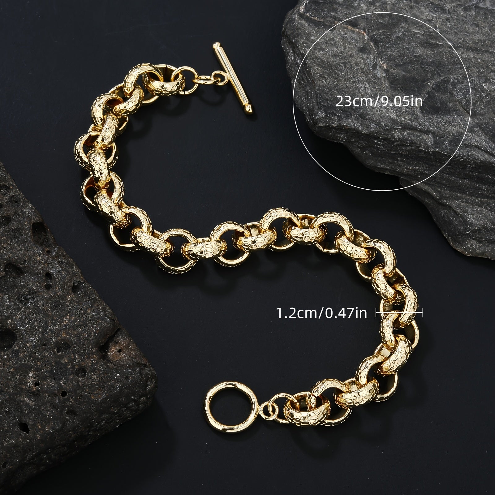 Elegant 12mm Copper 18K Plated Chain Bracelet with OT Clasp Circular Ring Pattern. Perfect for birthdays, holidays, and special occasions. Stylish and long-lasting.