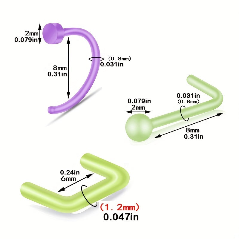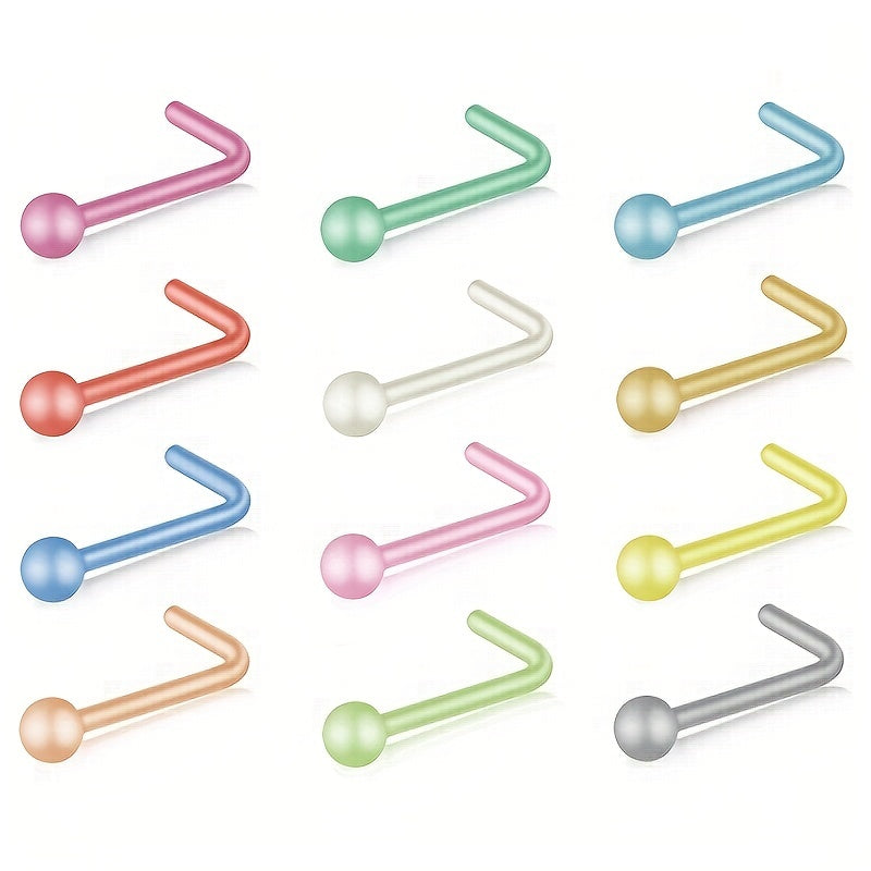 Add some flair to your nose piercing with these 12pcs candy nose ring screws made of acrylic. Perfect for women's nostril studs.