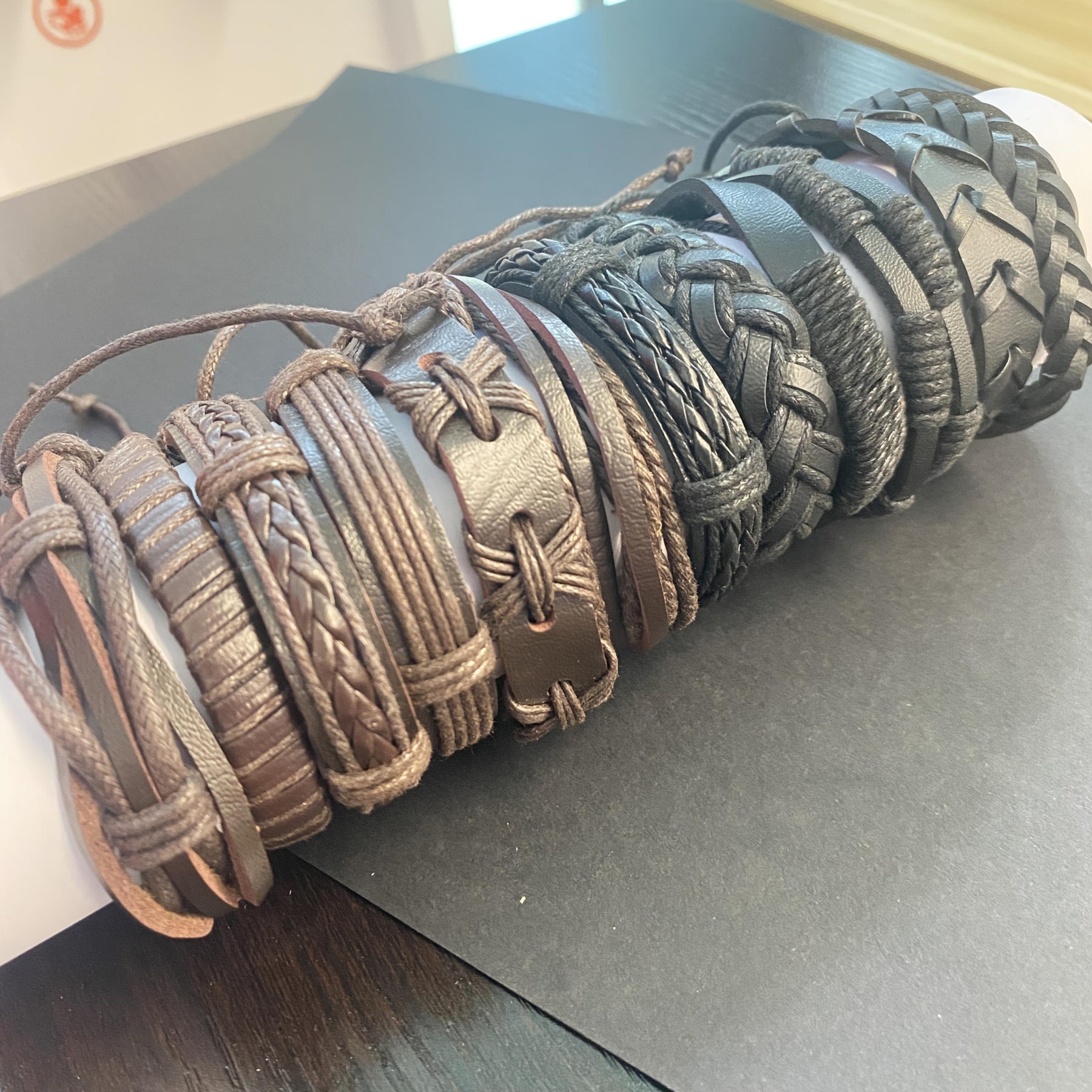 This set includes 12pcs of artistic retro style adjustable length PU material bracelets, making it a great gift for friends or men.