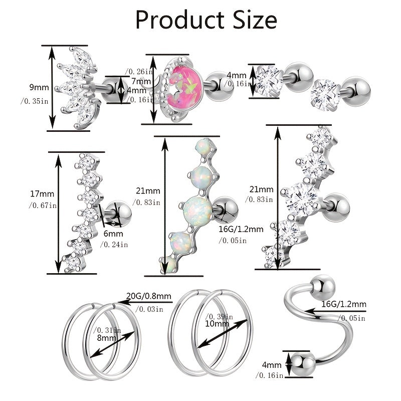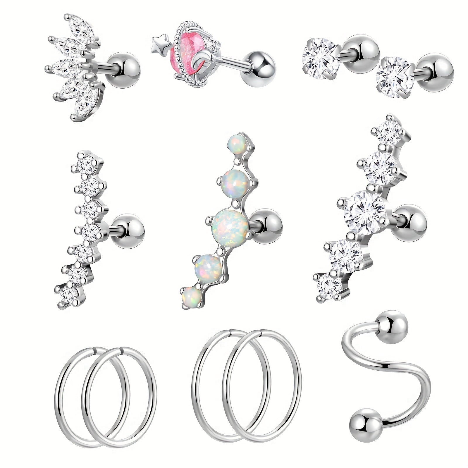 12Pcs Silver CZ Cartilage Earrings, Stainless Steel Unisex Jewelry