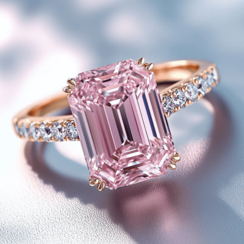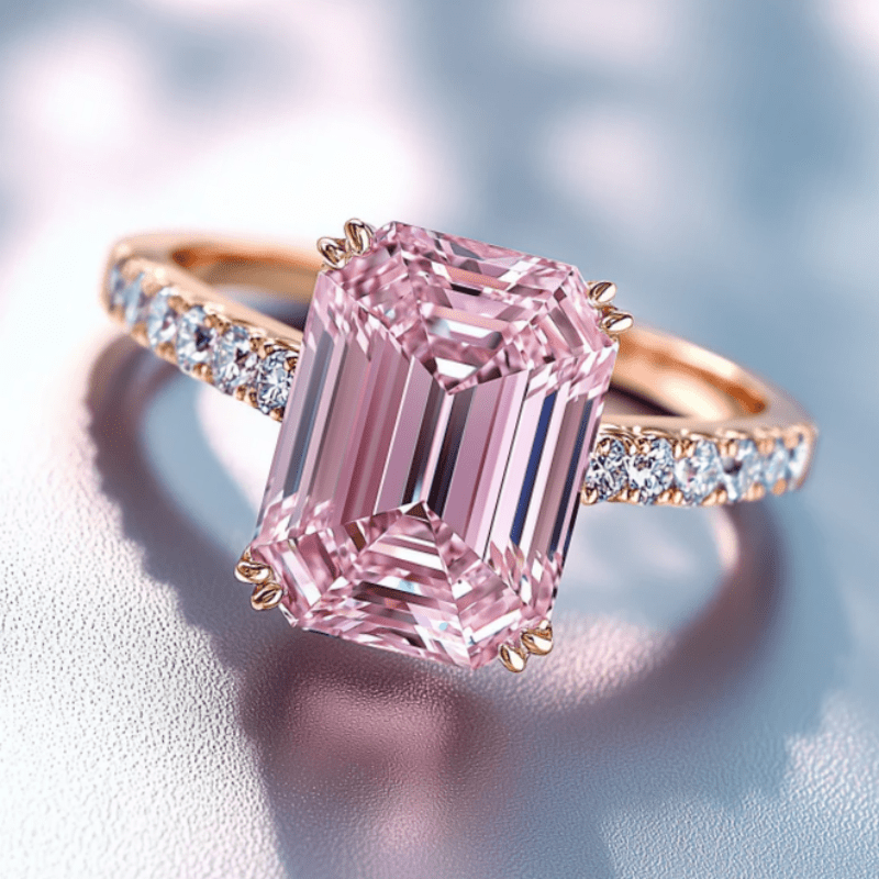 14k Gold Plated Pink CZ Engagement Ring with Sparkling Accents