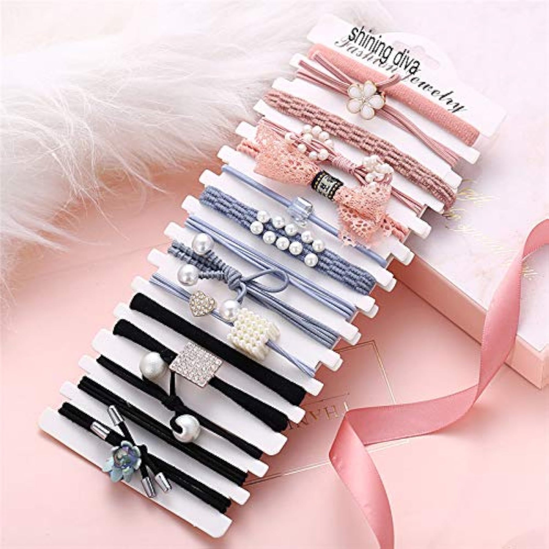 • Set of 15 pearl velvet hair bands in assorted colors