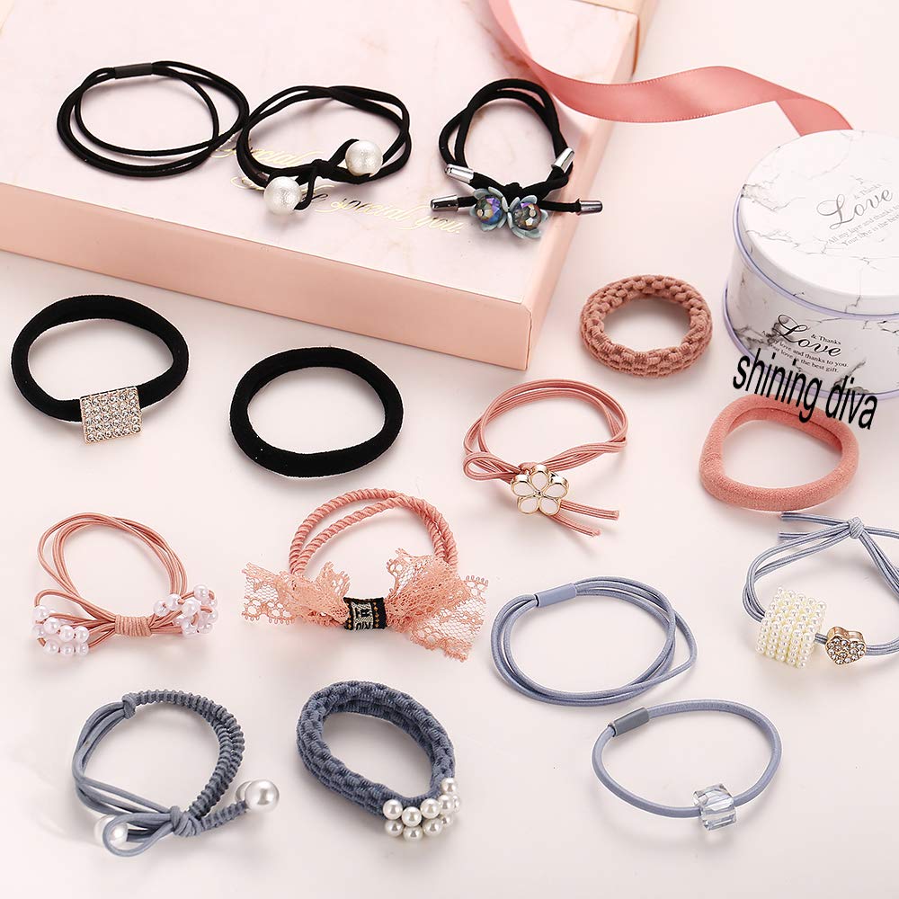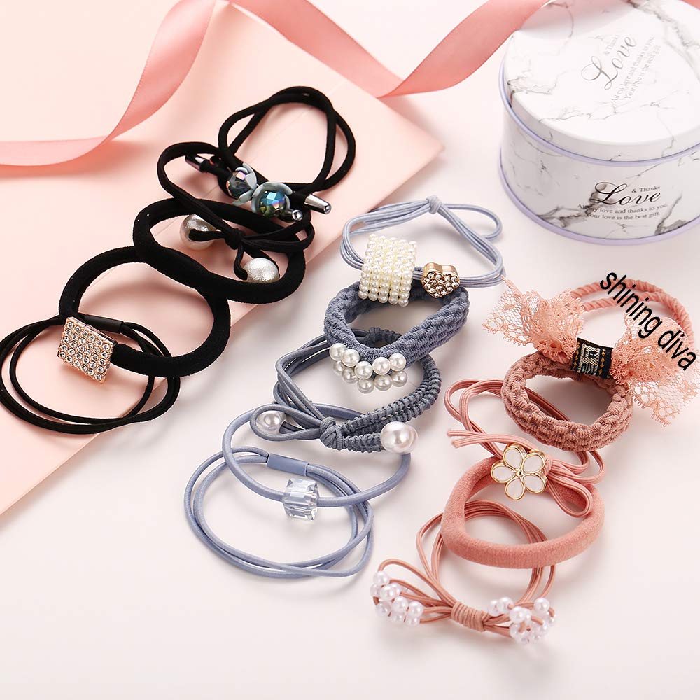 15pcs Pearl Velvet Hair Bands Combo for Women - 11973hb