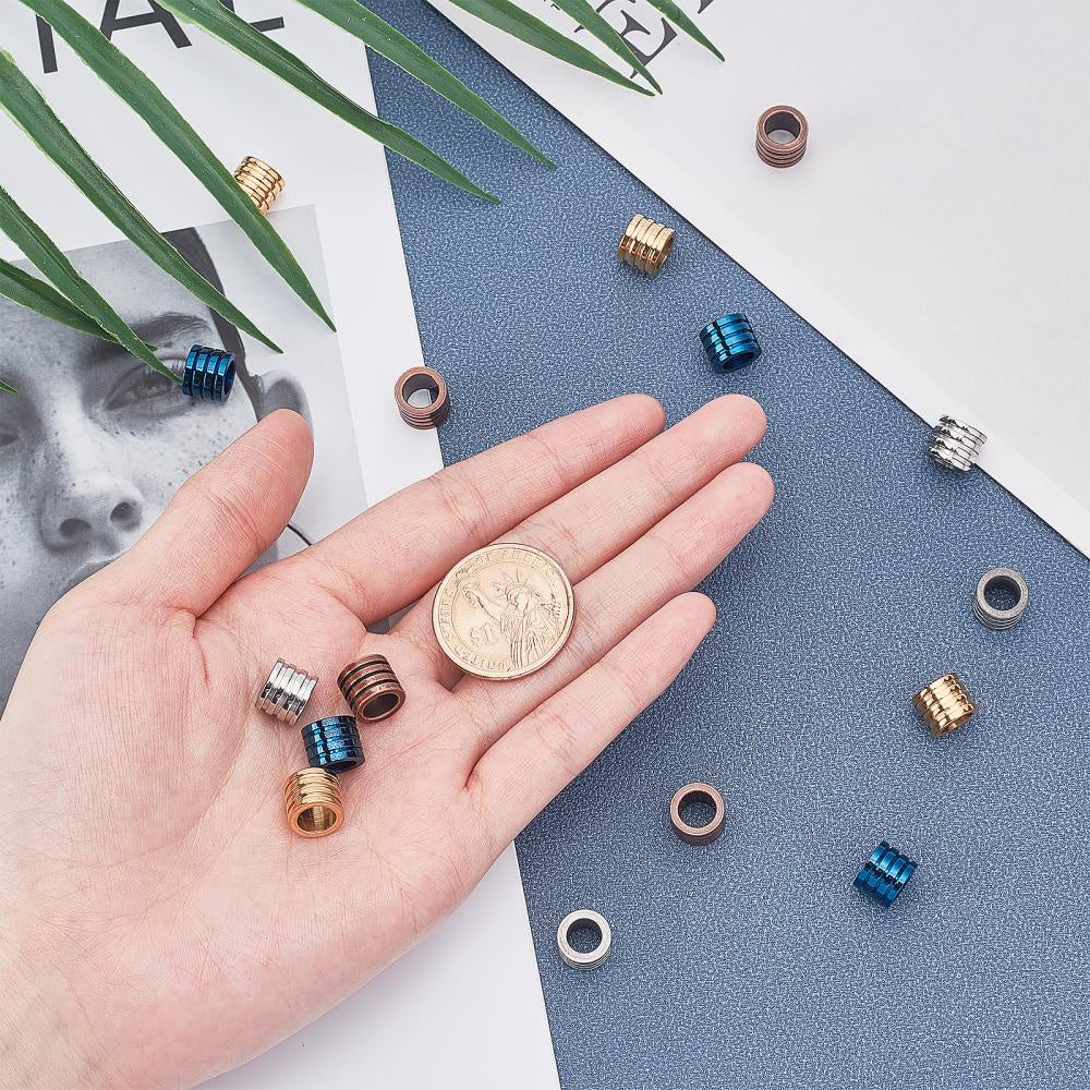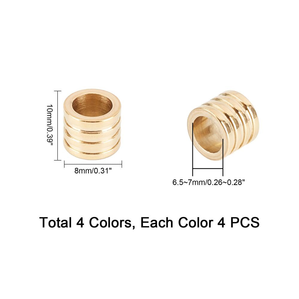 16pcs 4 Colors Stainless Steel Grooved Column Beads for Jewelry Making
