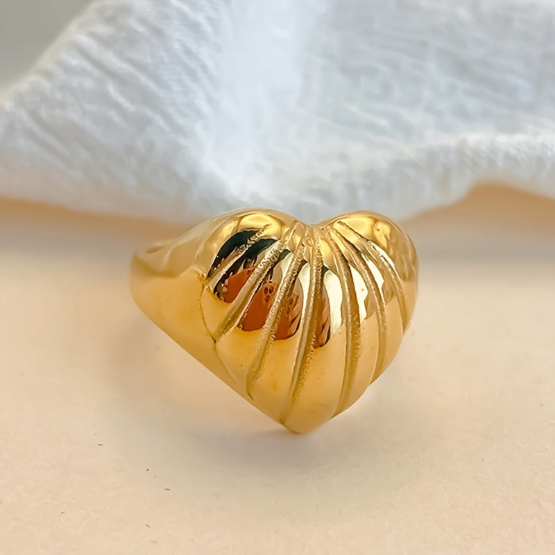 Add a touch of elegance to your look with this heart-shaped ring featuring intricate leaf details. Made of durable 316 stainless steel, this ring is perfect for daily wear or special occasions.