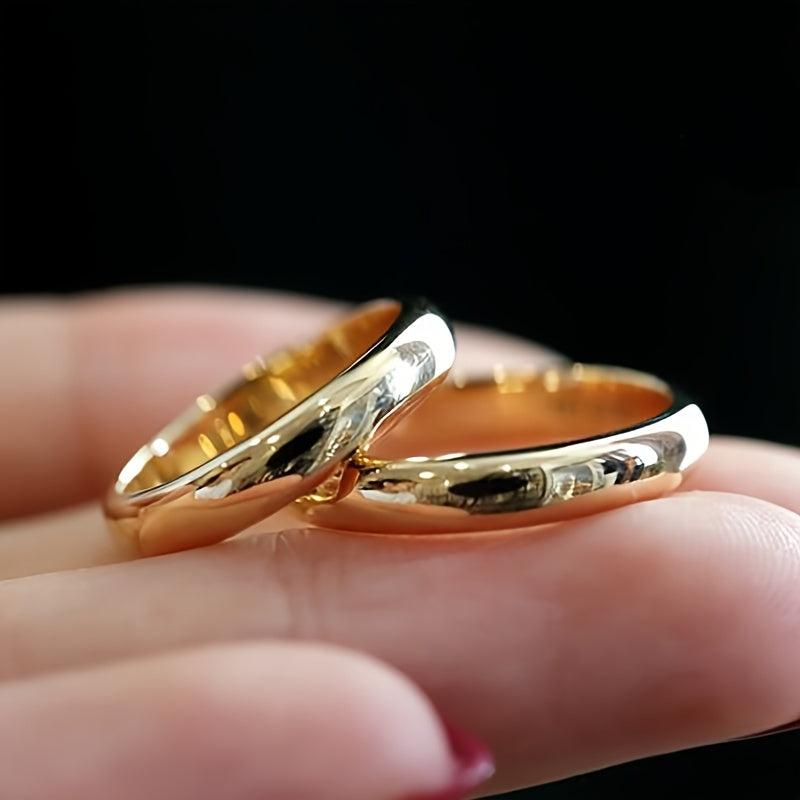 Elegant and minimalist 4mm ring perfect for engagement, wedding, or daily wear. Hypoallergenic and durable stainless steel with a luxurious 18K gold plating.