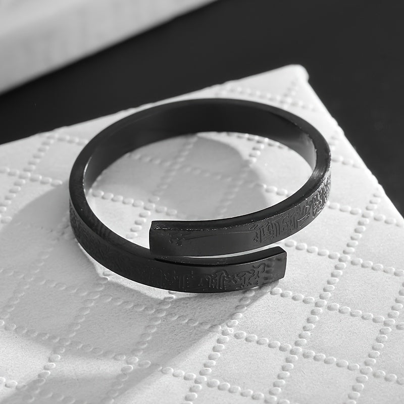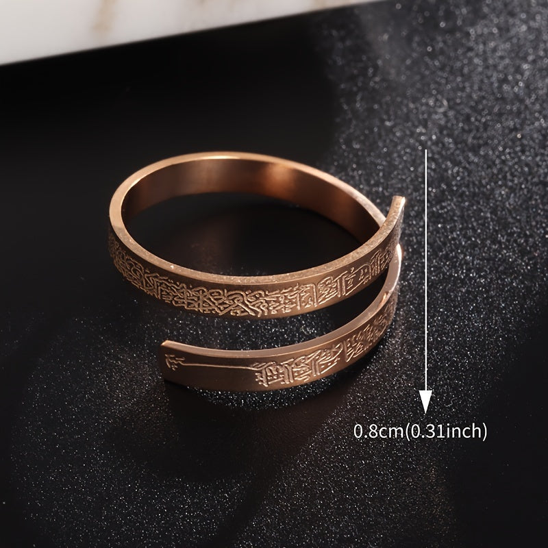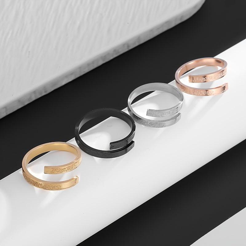 Beautifully designed 18K golden plated stainless steel ring with Quranic verse. Adjustable and suitable for daily wear in all seasons.