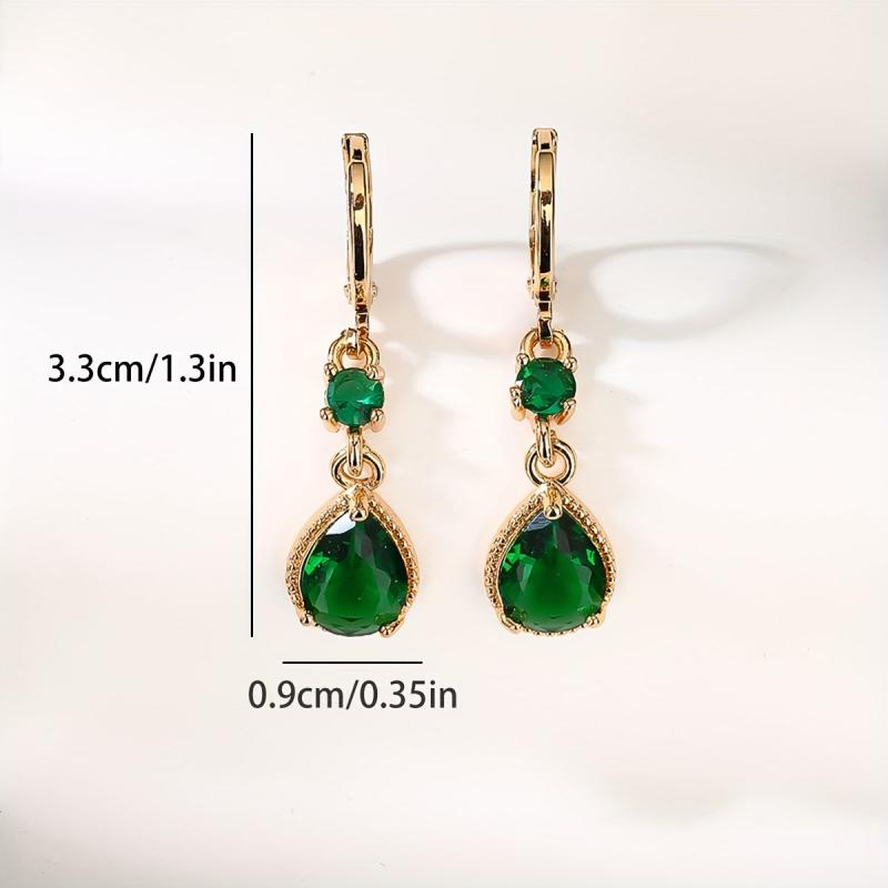 Add a touch of glamour to your festival look with these stunning 18K plated copper dangle earrings featuring emerald green teardrop zirconia. Perfect for music festivals and other special occasions.