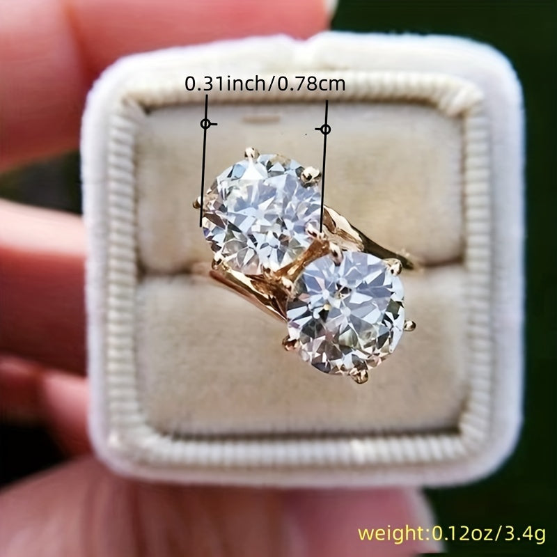 Elegant and delicate 18K plated ring with double zircon stones. Perfect for daily wear or special occasions.