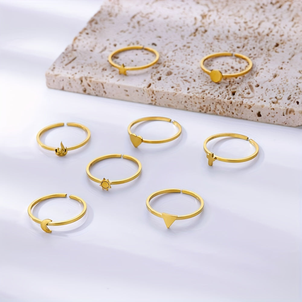 Elevate your party look with this stunning 18k plated ring featuring intricate star, fire, and cactus patterns. The adjustable cuff design ensures a perfect fit for any occasion.