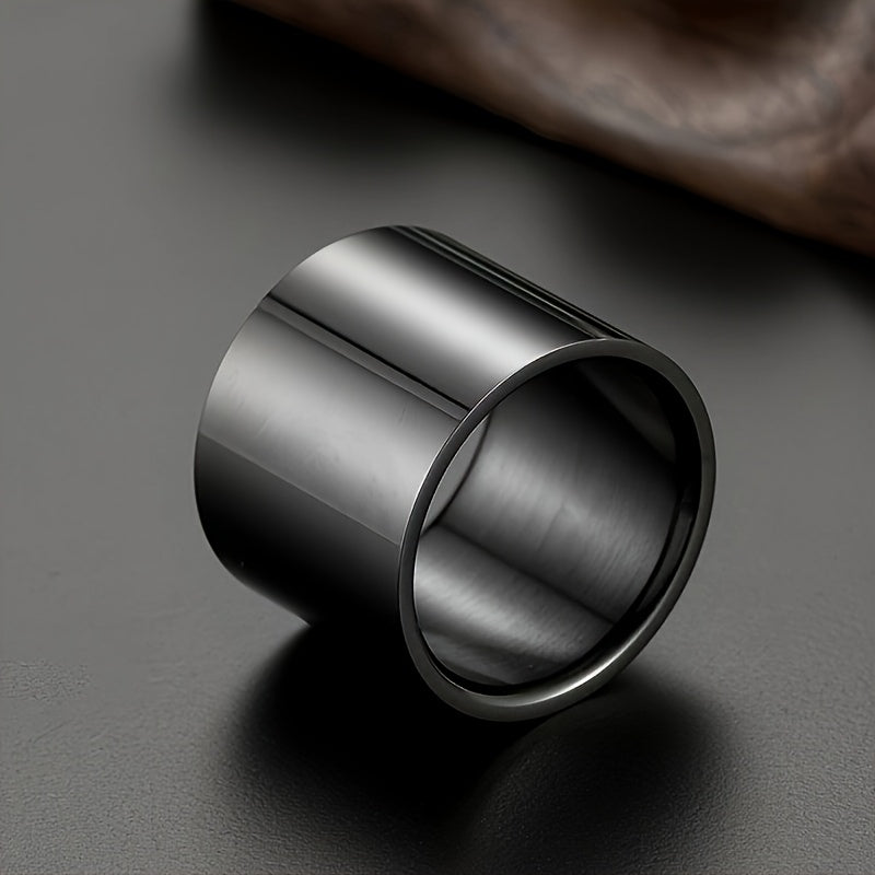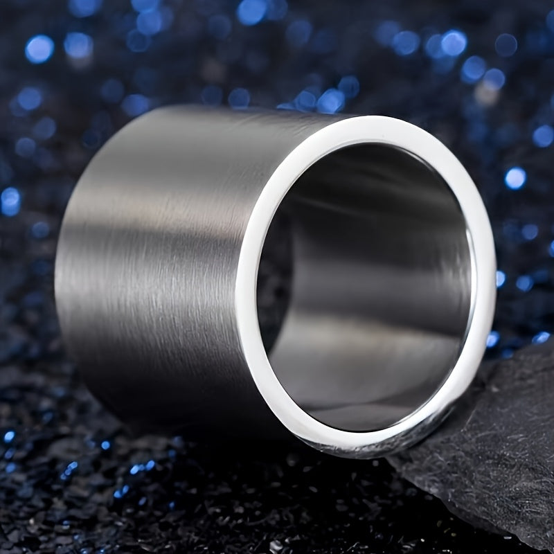 This titanium men's ring features a wide 18mm band that is perfect for casual wear. The simple design adds a touch of style to any outfit.