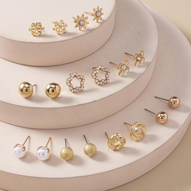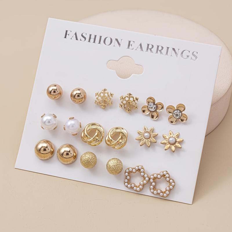 Enhance your daily wear jewelry collection with this 18pcs set of stylish metal earrings featuring rhinestone flowers imitating snowflakes. Perfect for vacation and holiday wear.