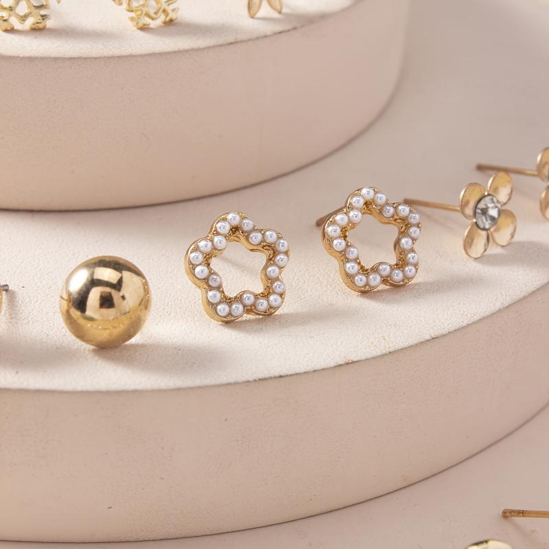 18pcs Metal Earrings Set with Rhinestone Flowers & Snowflakes