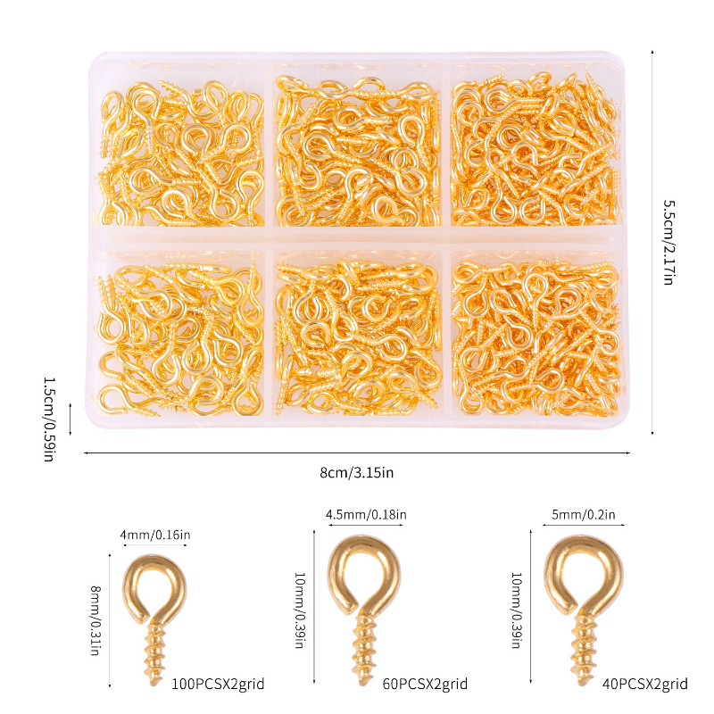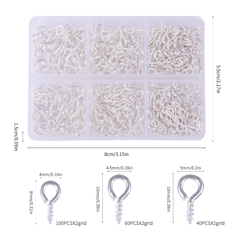 This 1box contains an assortment of hook sheep eye screw nails, perfect for DIY jewelry making and crafting projects.