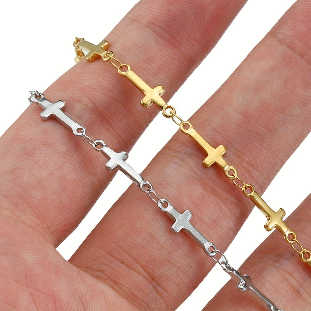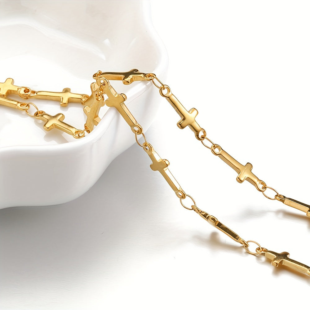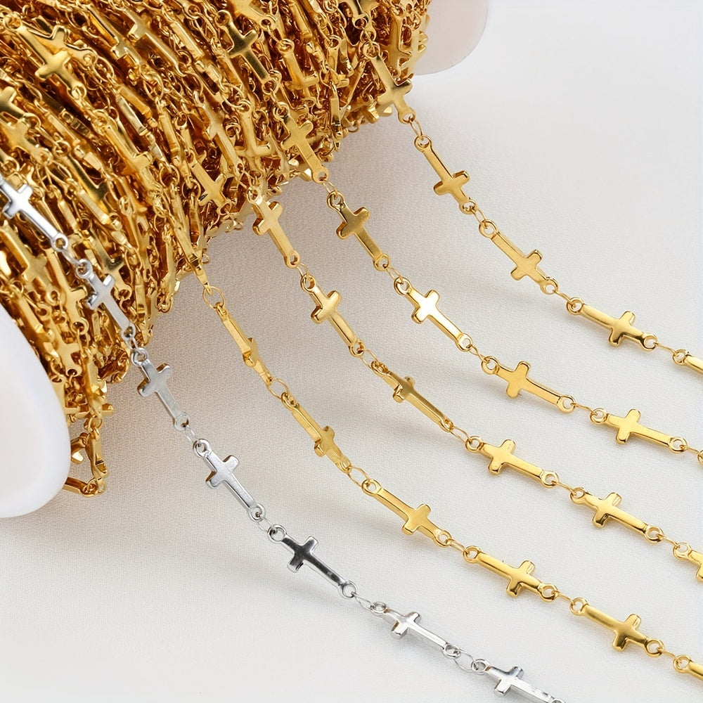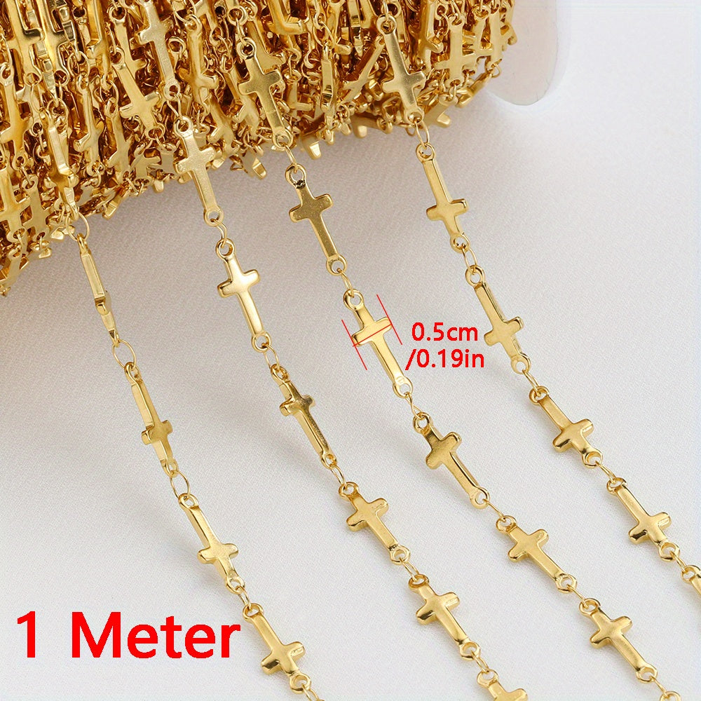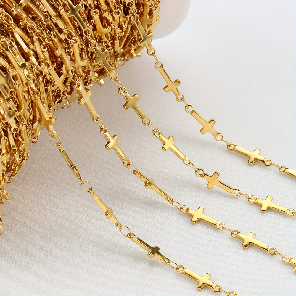 High-quality stainless steel chain for making DIY necklaces and bracelets. Stunning cross charm design with golden color that won't fade over time.
