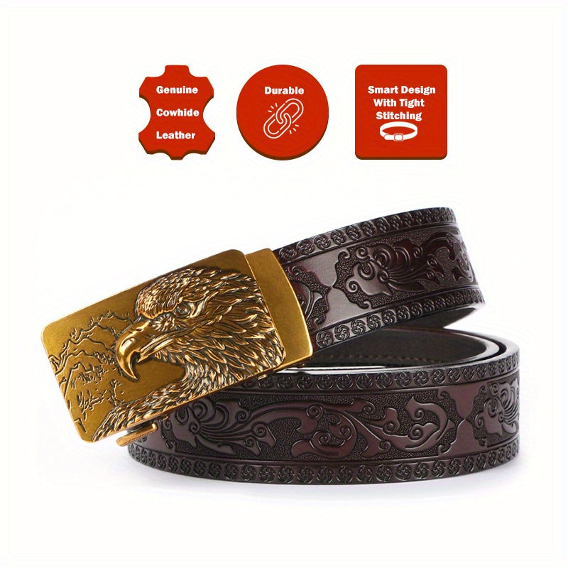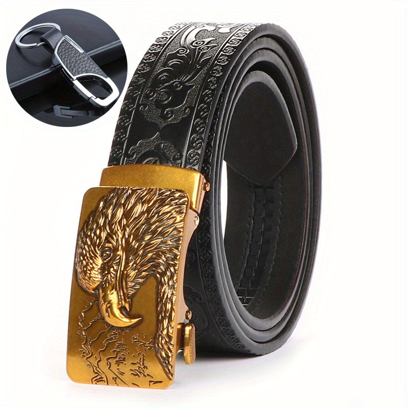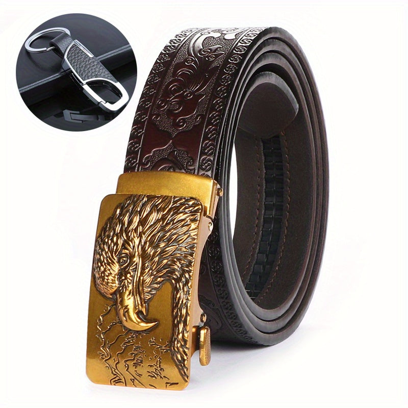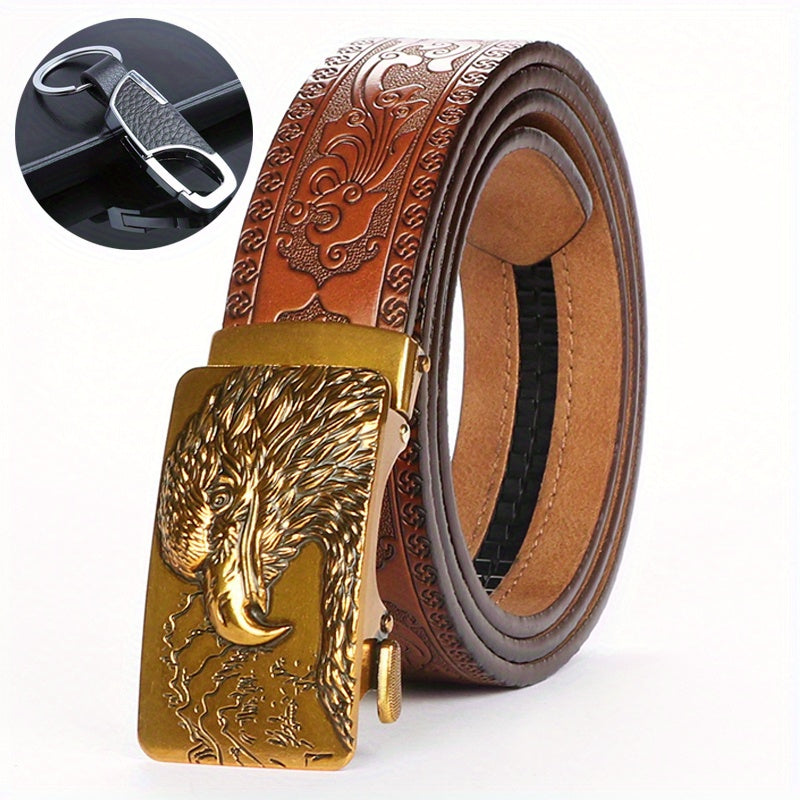 1pc Key Chain 1pc Leather Ratchet Belt for Men Adjustable Automatic Buckle