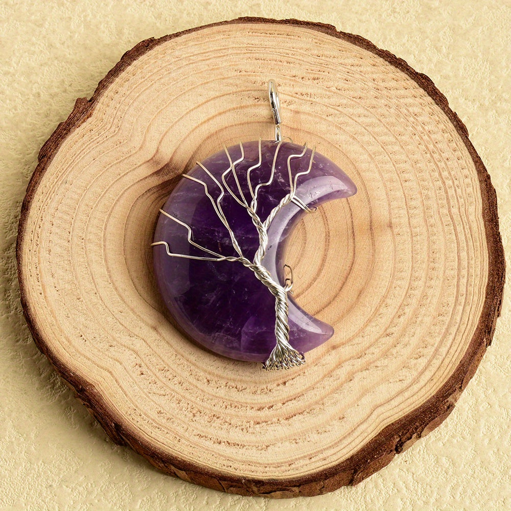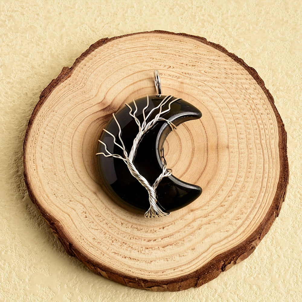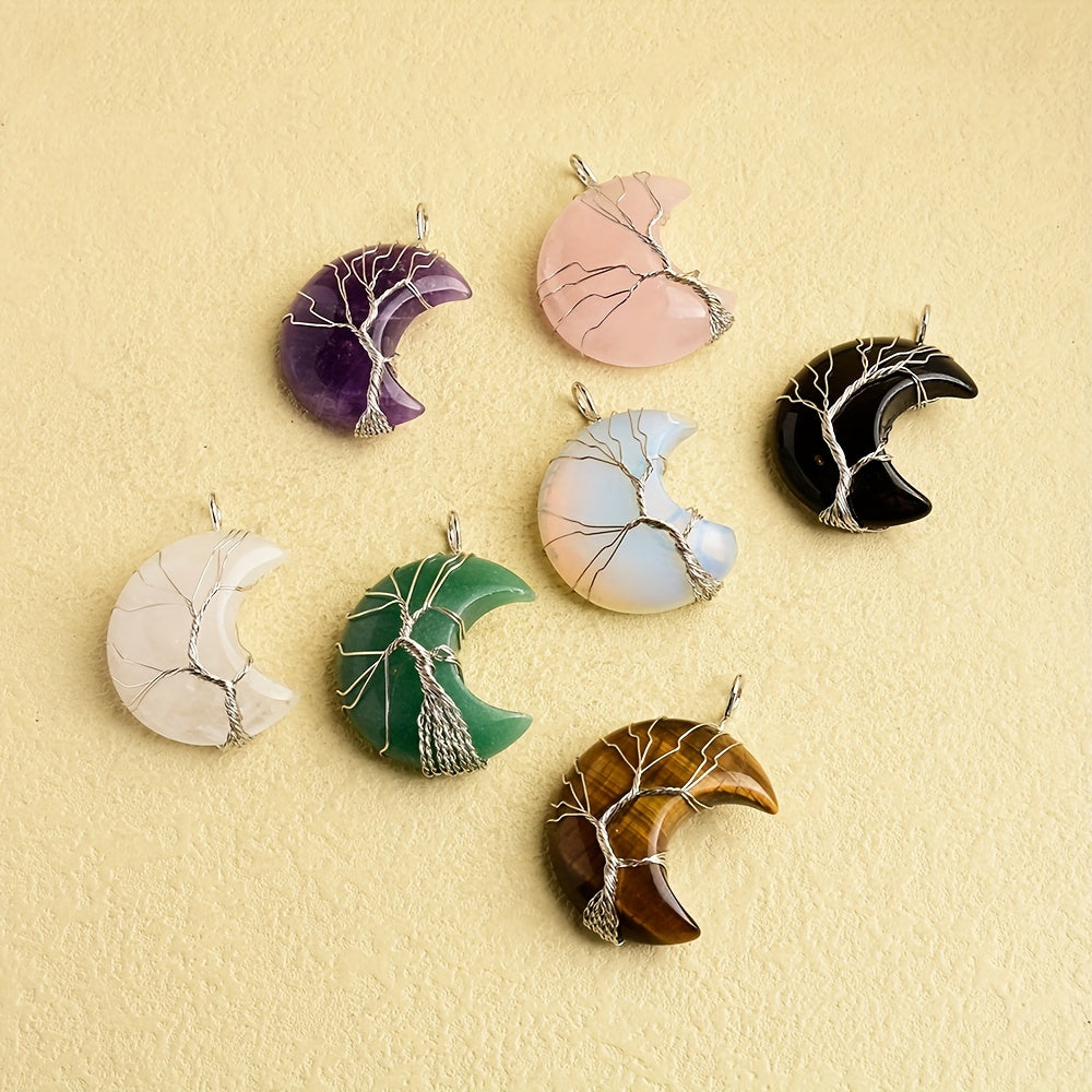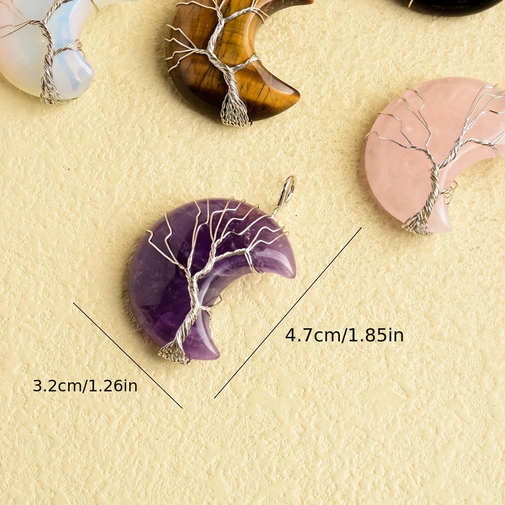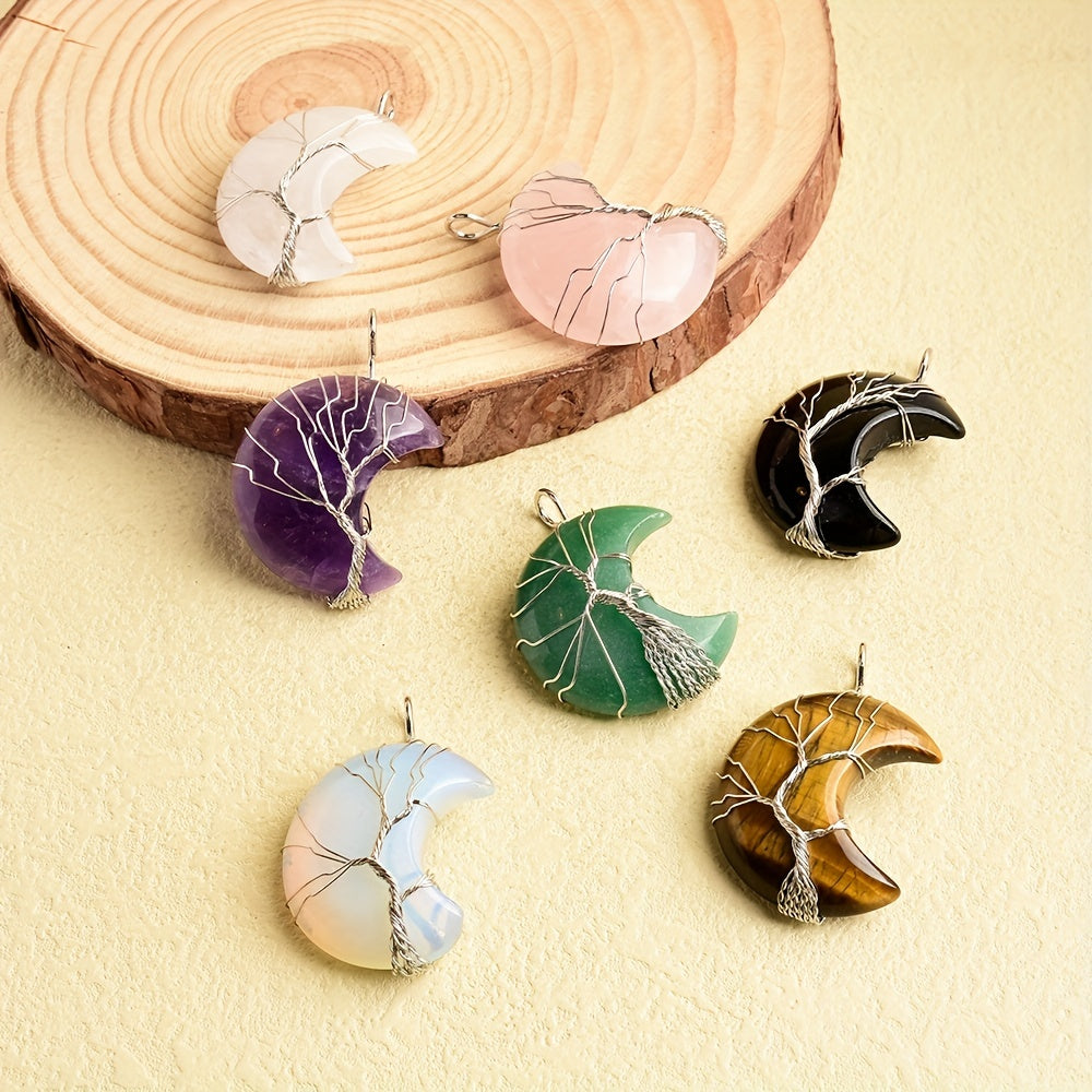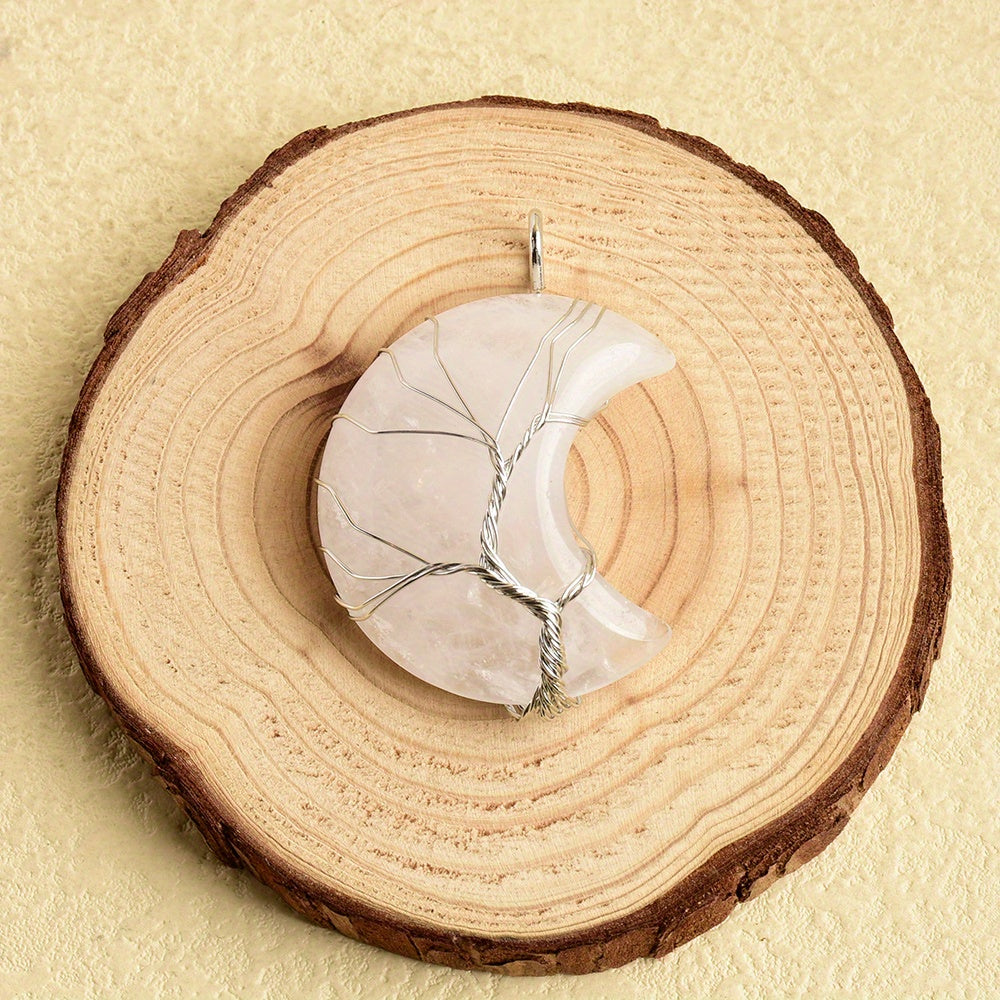 1pc Life Tree Natural Crystal Stone Moon Pendant DIY Necklace Jewelry