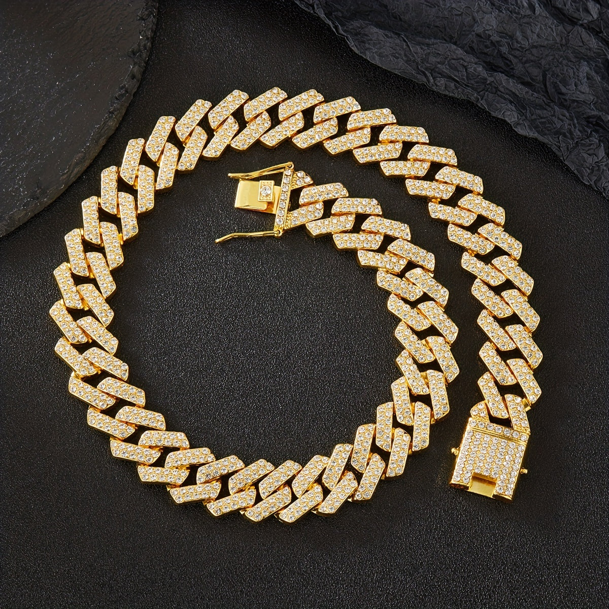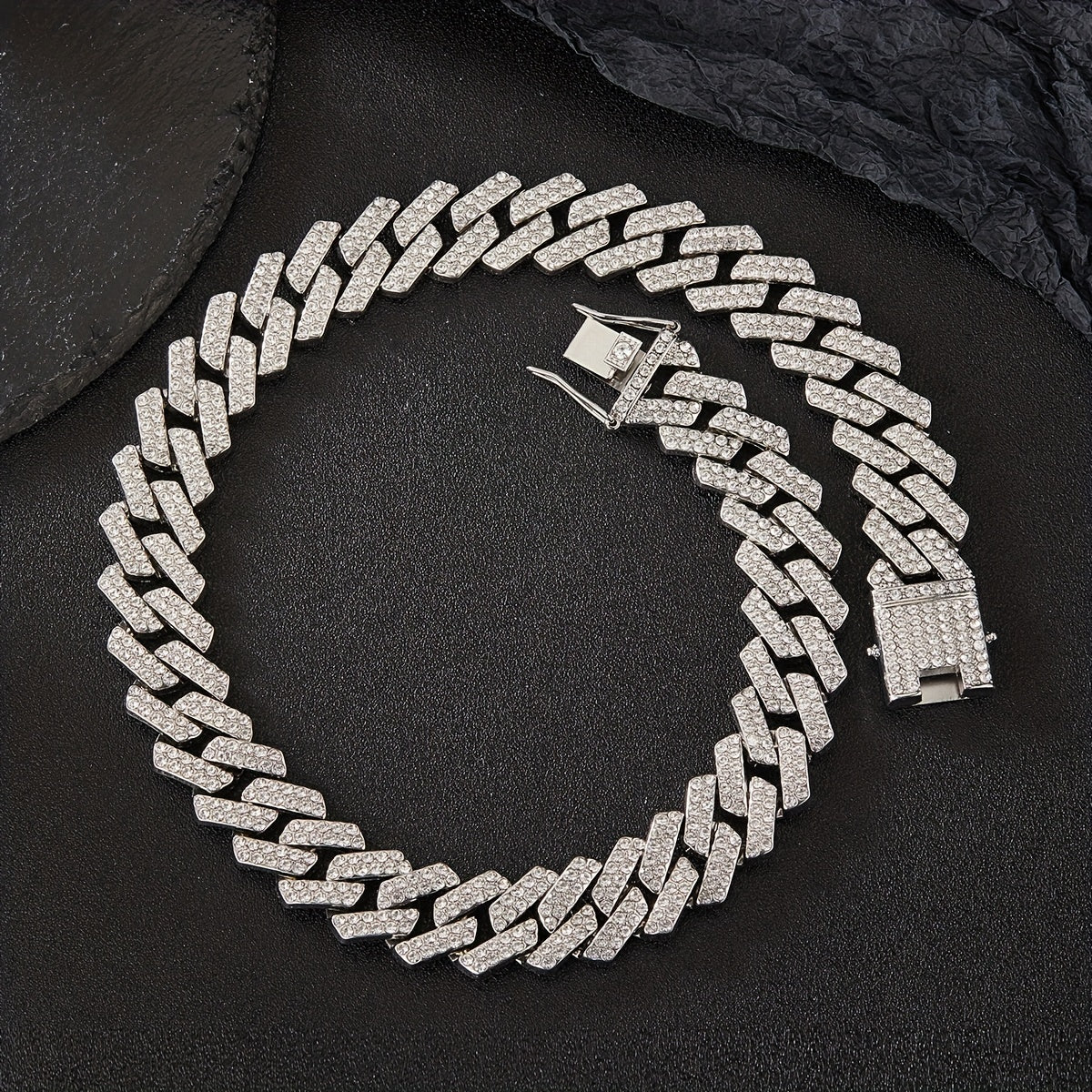 This hip hop rhinestone chain is a stylish accessory that adds a touch of sparkle to your outfit. Perfect for parties and casual wear.