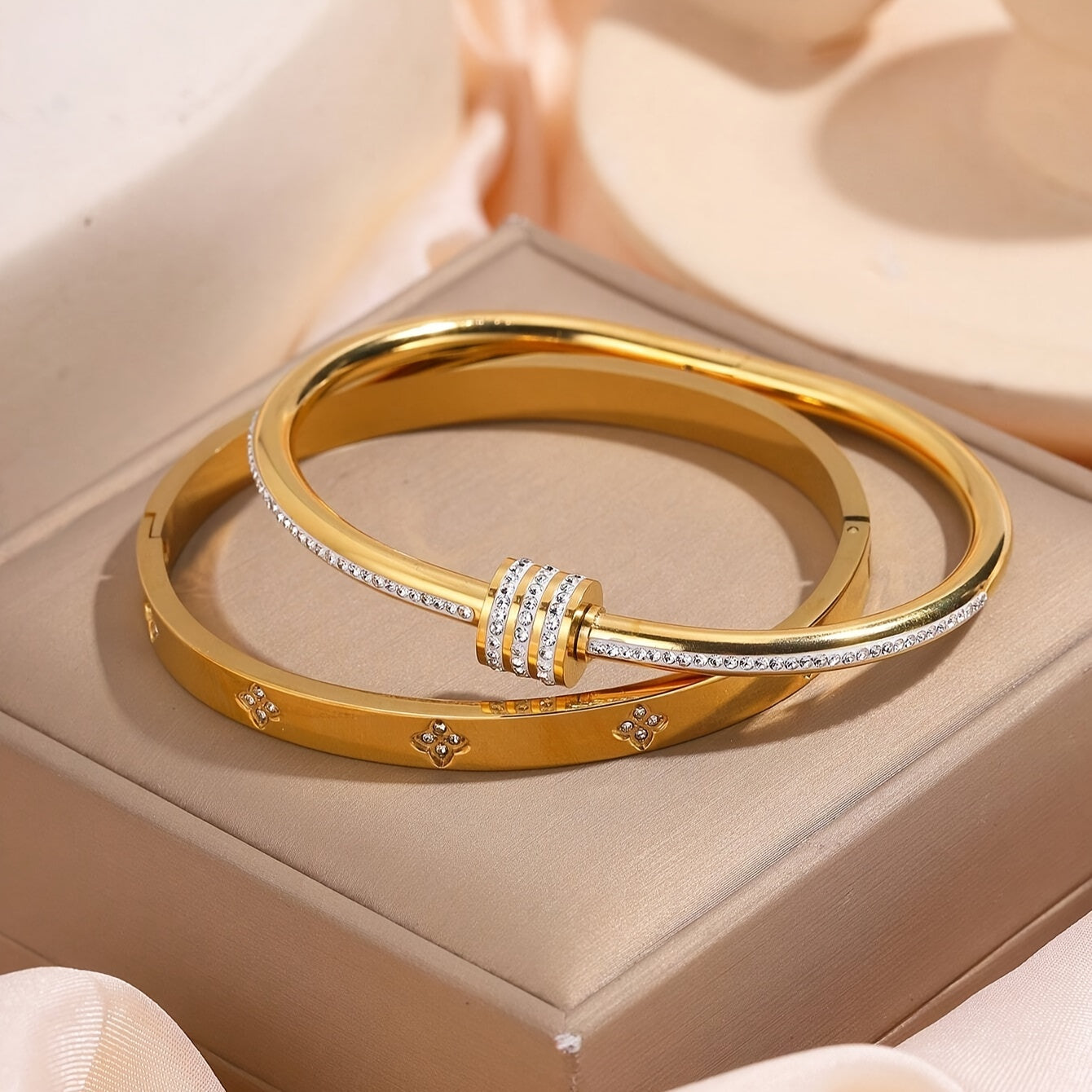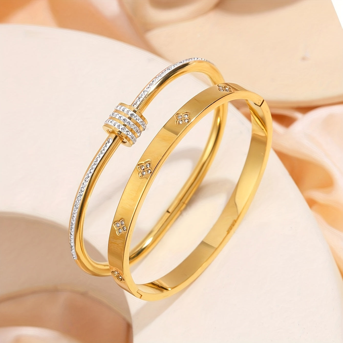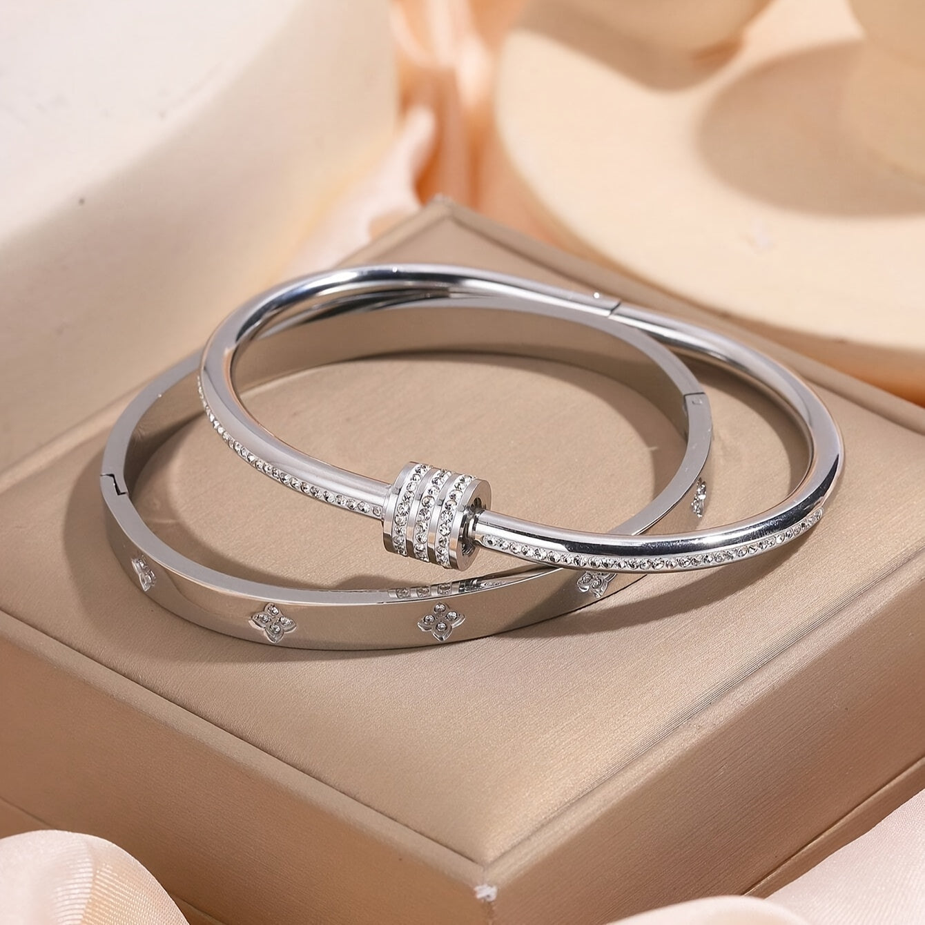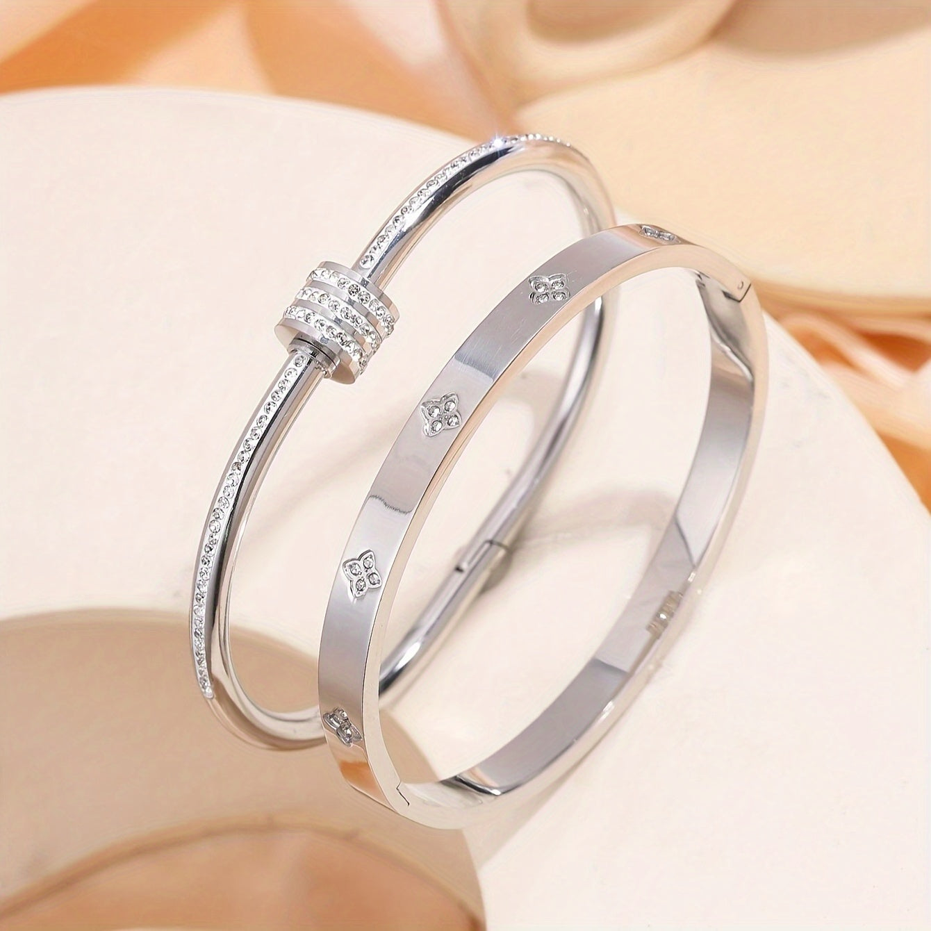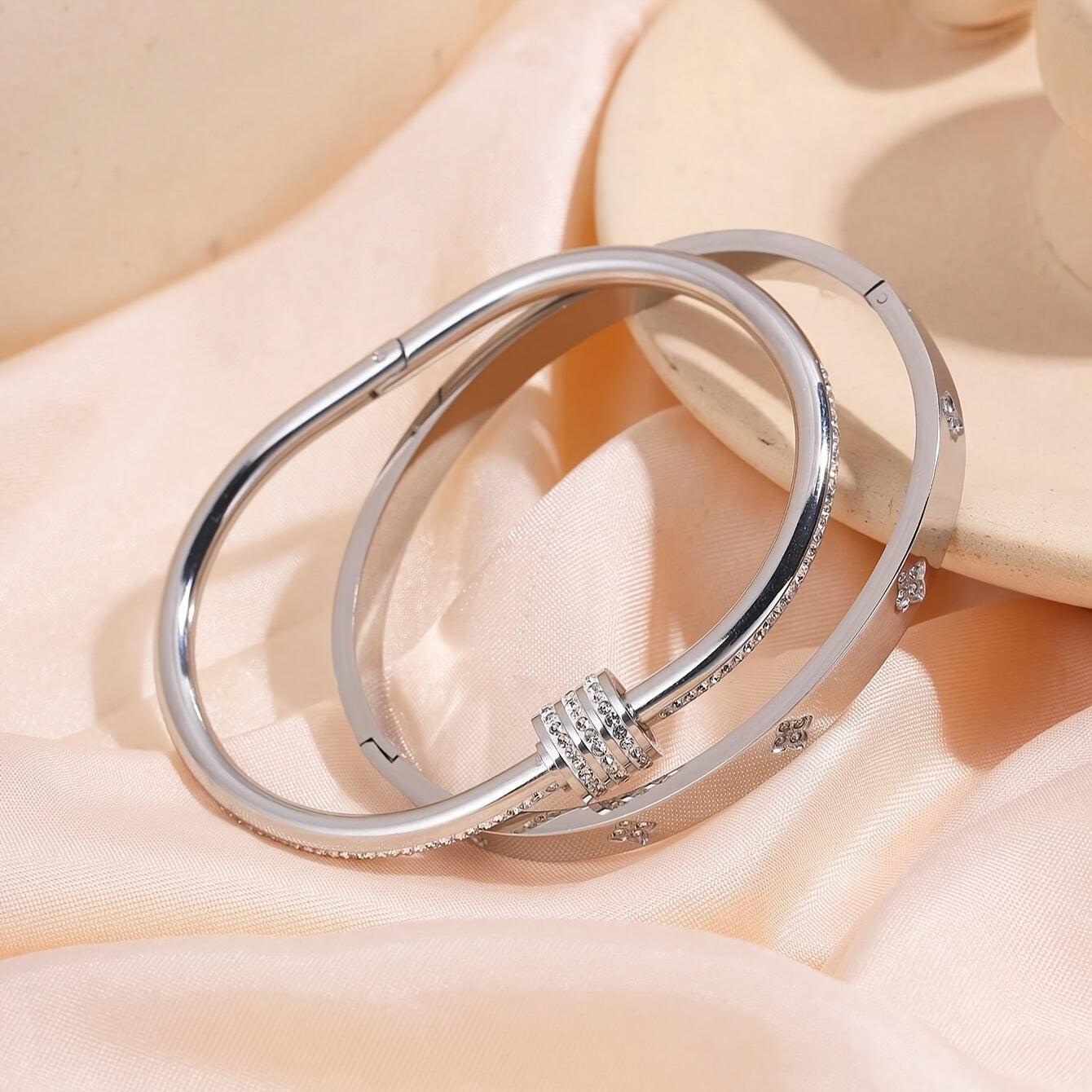 Enhance your style with this set of two stainless steel bracelets that are perfect for daily wear, parties, and dressing up. Suitable for both men and women.