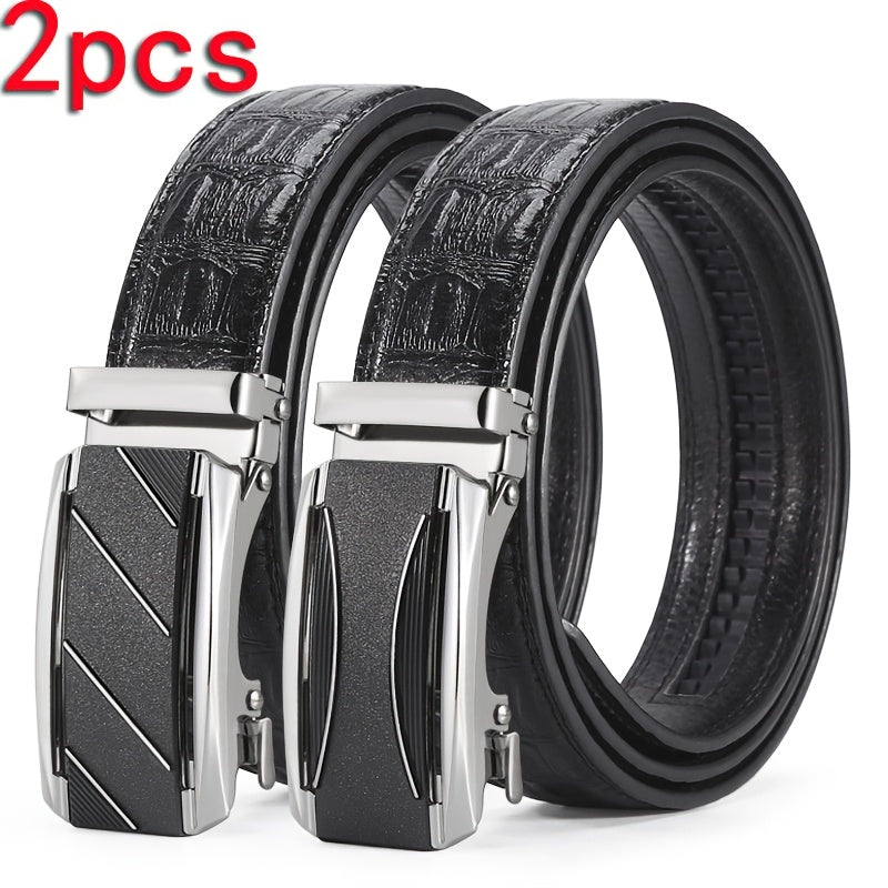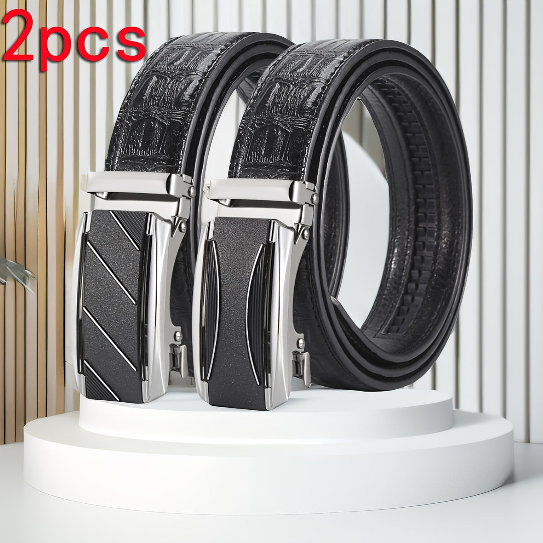 Upgrade your style with this 2-pack of men's casual faux leather belts featuring automatic iron buckles. Perfect for business or everyday wear. Ideal gift for Dad and boyfriend.