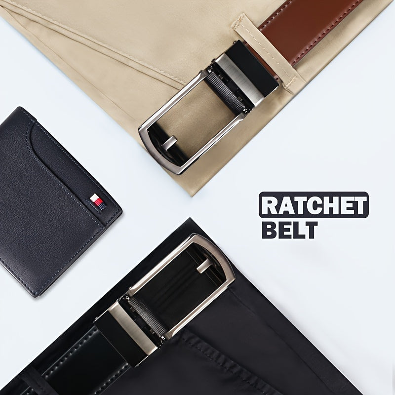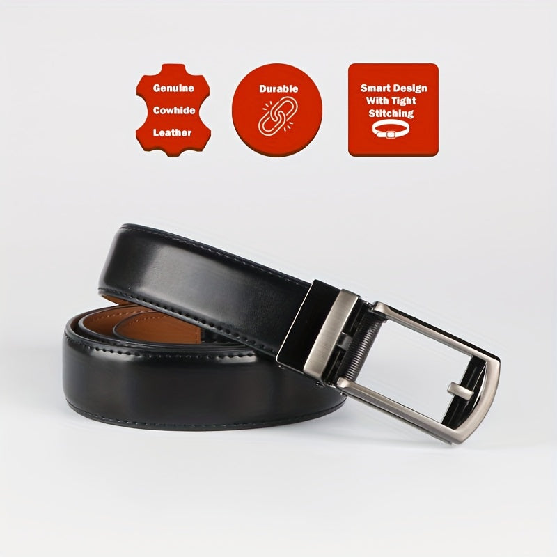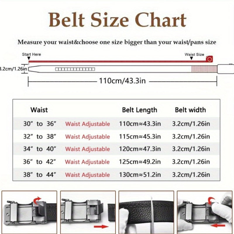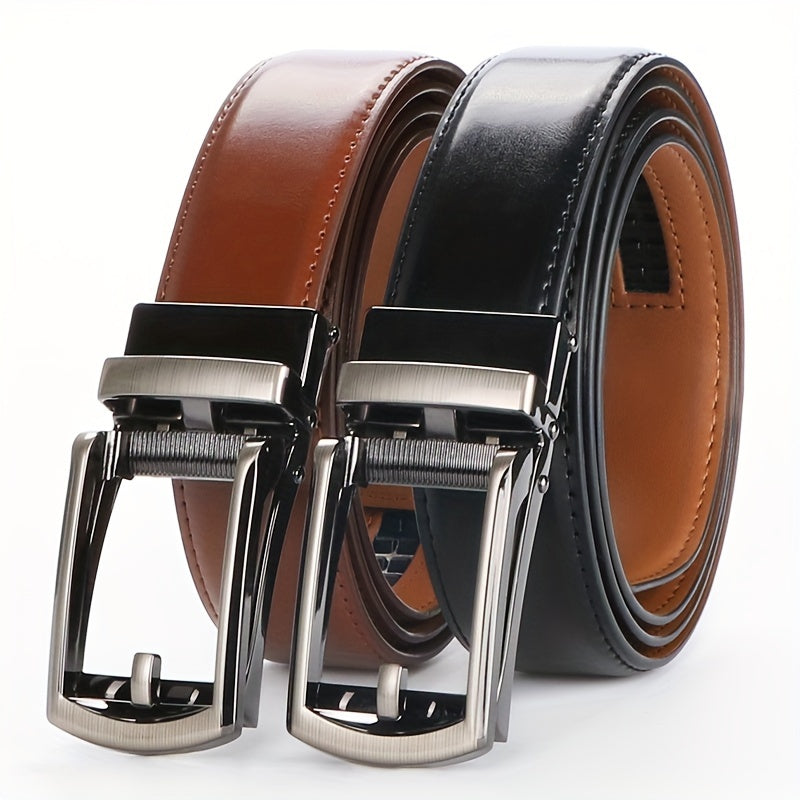 Upgrade your style with this set of 2 leather belts featuring automatic buckles. Made with high-quality leather and a durable alloy buckle.